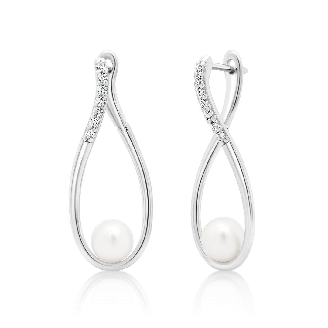 Cercei din aur alb de 14K, cu Perle de cultură și pietre cubic zirconia.