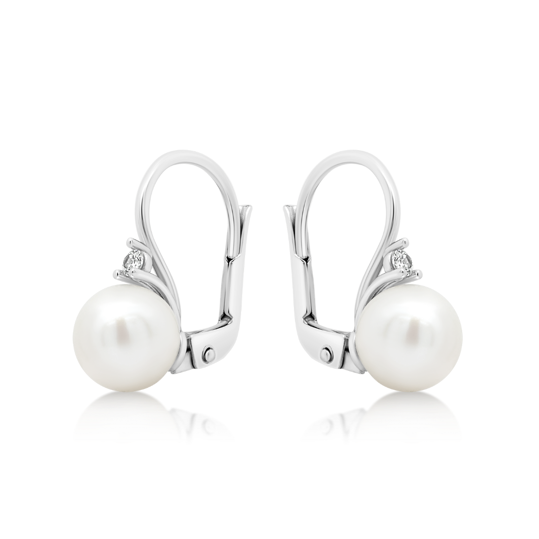 Cercei din aur alb de 14K cu Perle de cultură și pietre cubic zirconia.