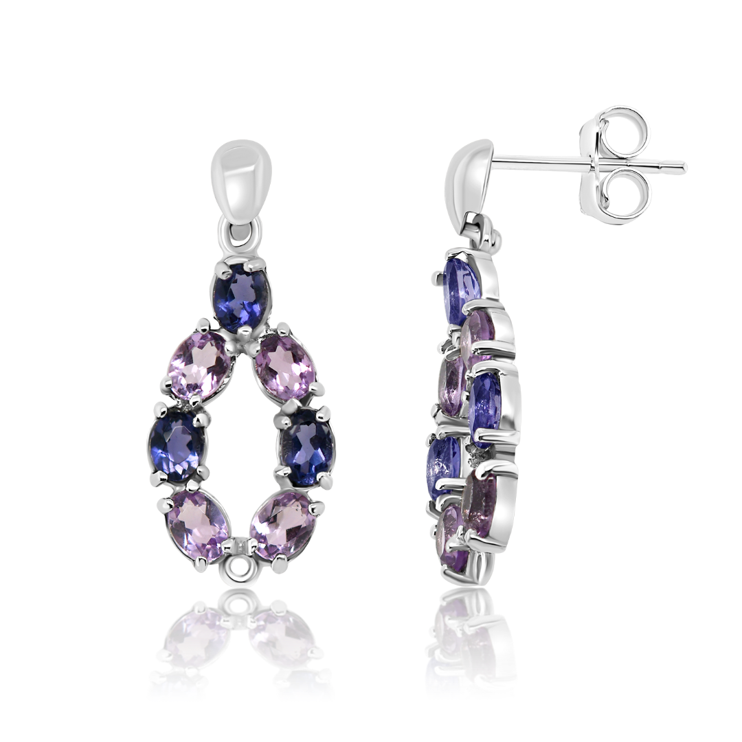 Cercei din aur alb de 14K cu pietre colorate.