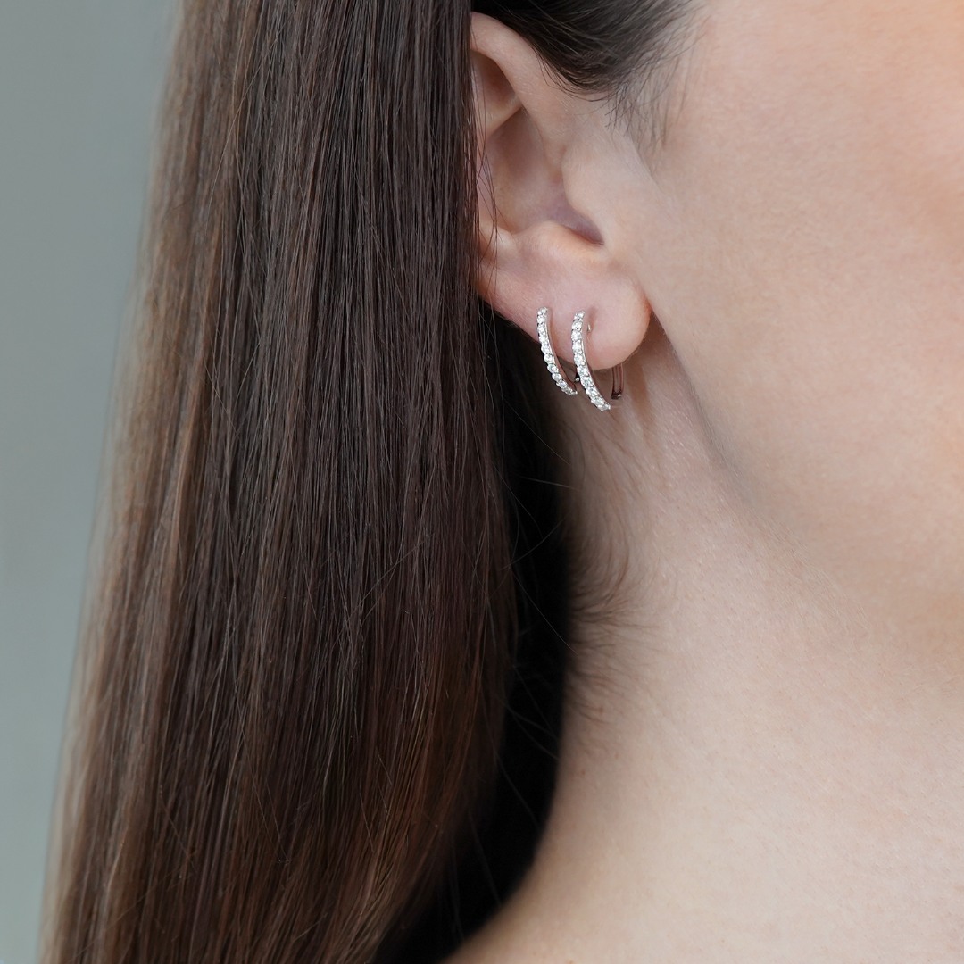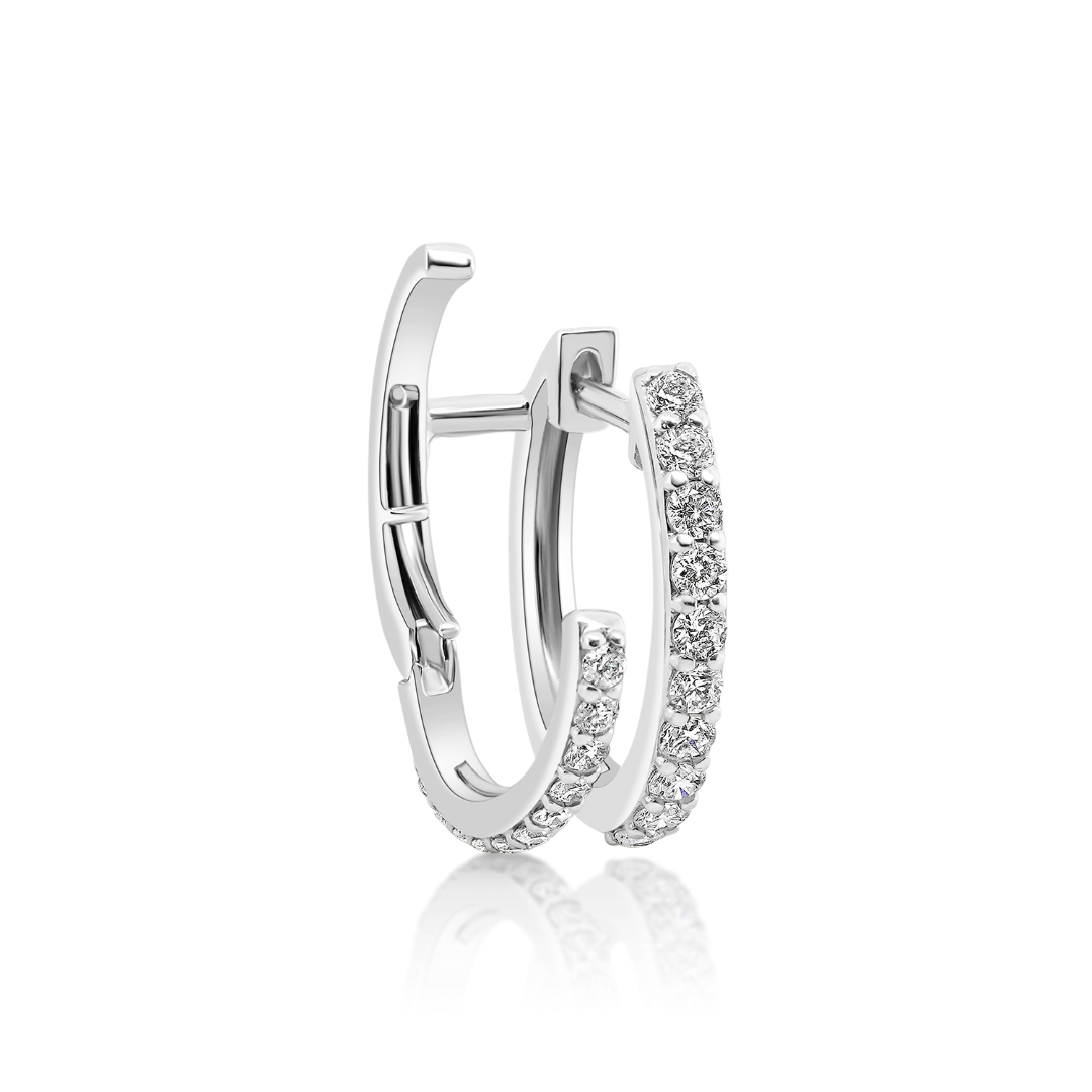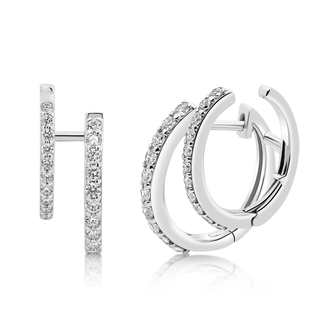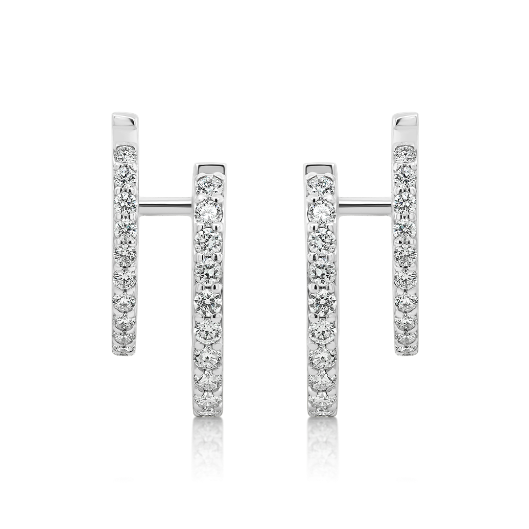 Cercei realizați din aur alb de 18K încrustați cu Diamante brilliant cut de 0.72ct. Designul modern oferă o strălucire rafinată, perfectă atât pentru purtarea zilnică, cât și pentru ocazii speciale.