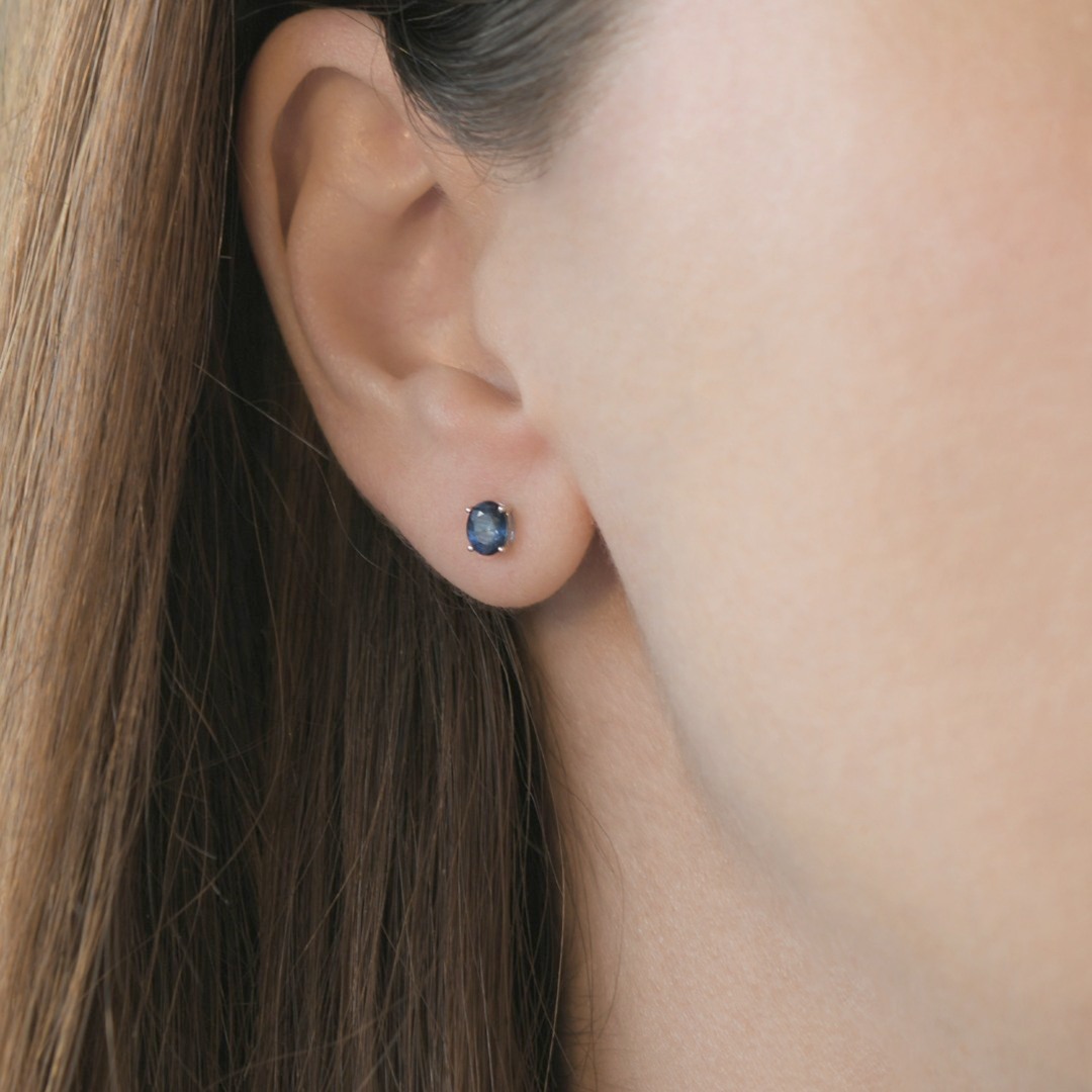 Cercei din aur alb de 18K cu Safire albastre naturale de 0.60ct.