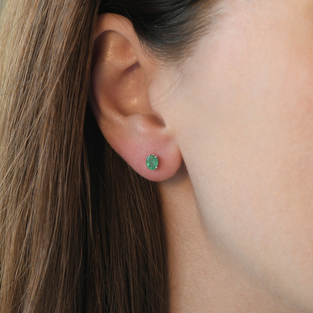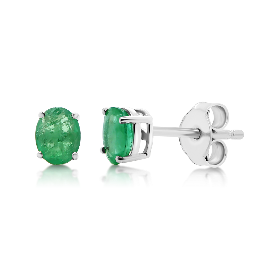 Cercei din aur alb de 18K cu Smaralde naturale de 0.70ct.