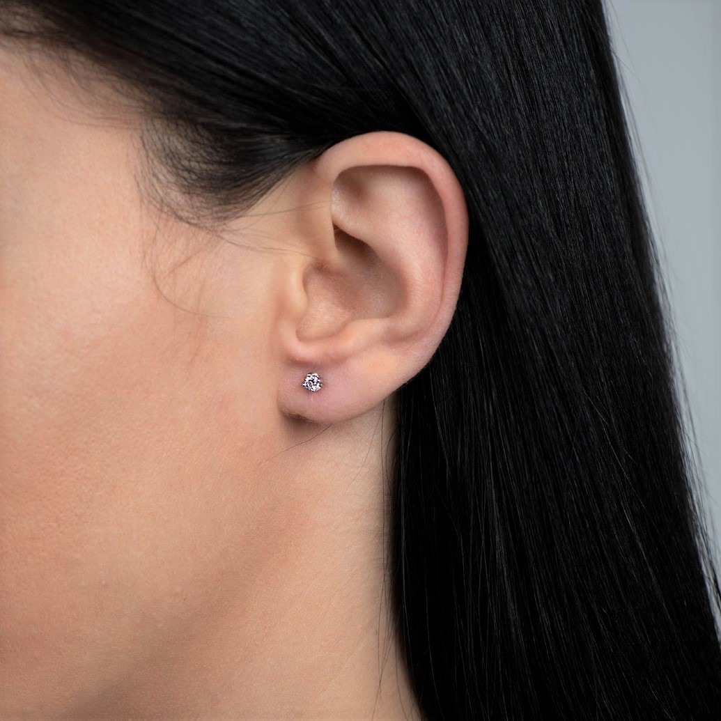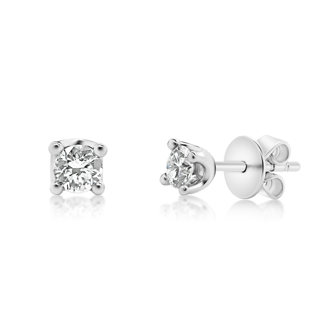 Cercei din aur alb de 14K cu două Diamante naturale Round Brilliant 0.199ct.