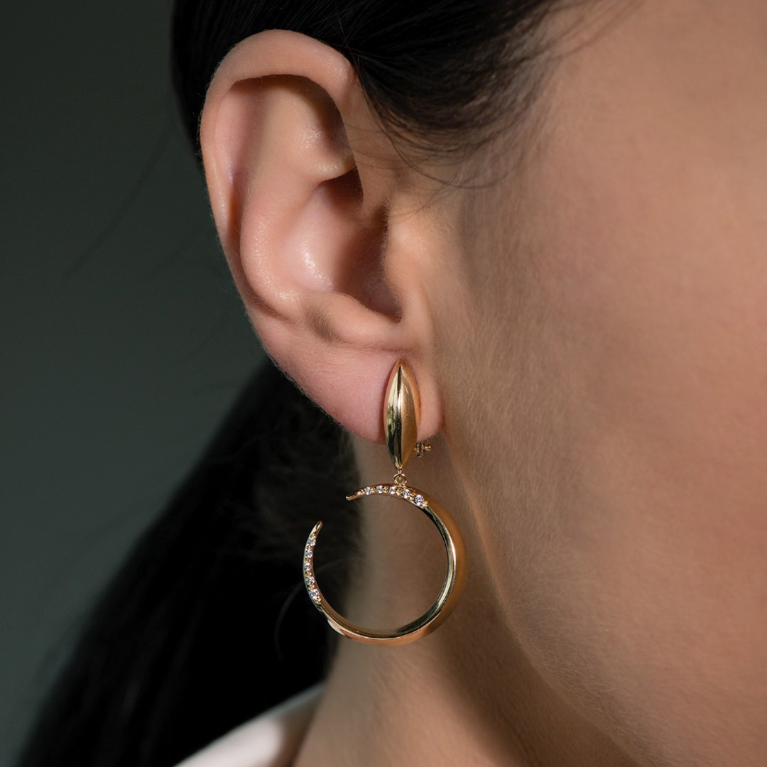 Cercei din aur galben de 14K cu pietre cubic zirconia.