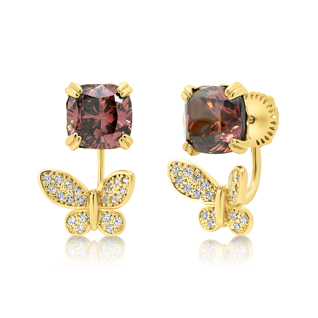 Cercei din aur galben de 14K cu elemente în formă de fluture și zirconia.