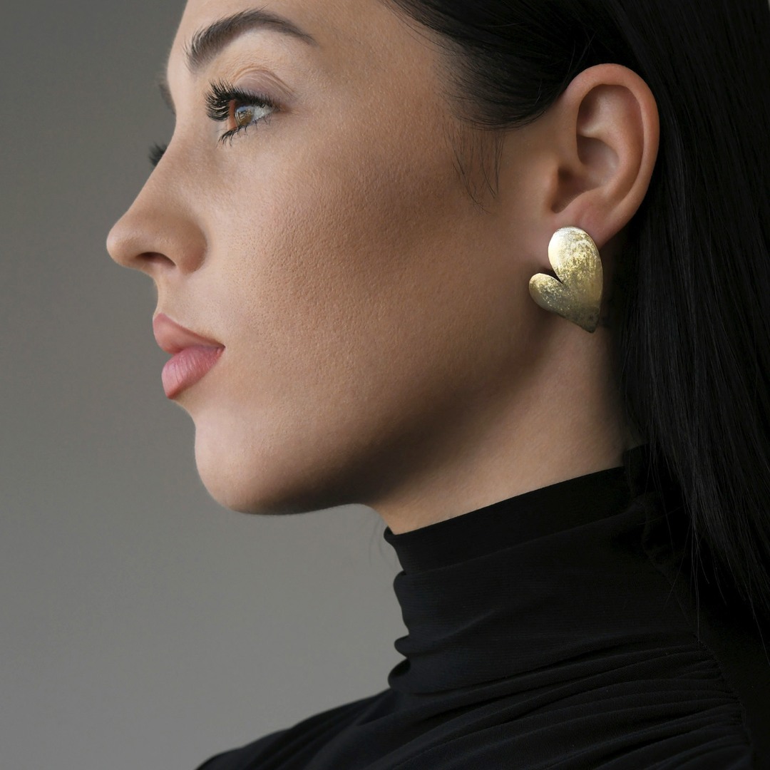 Cercei în formă de inimă cu efect satinat din aur galben de 14K.