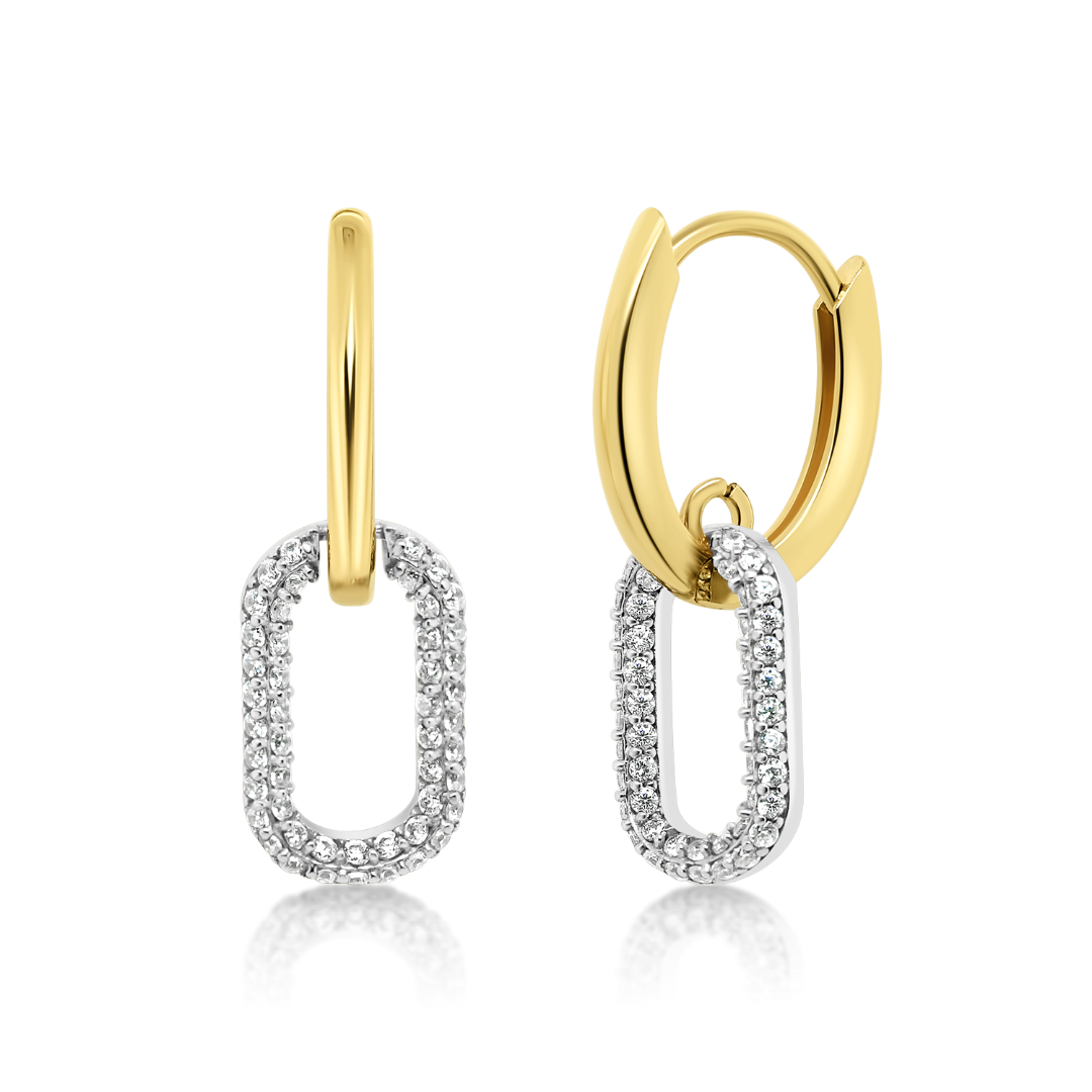 Cercei din aur galben de 14K cu element din aur alb și pietre cubic zirconia.