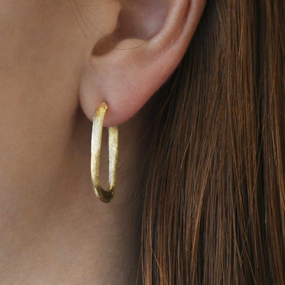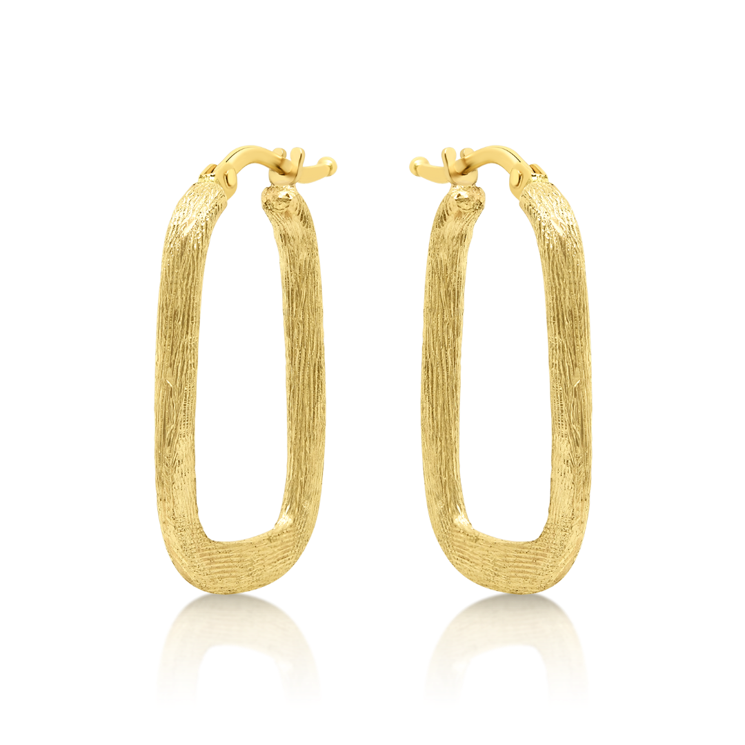 Cercei din aur galben de 14K cu efect satinat.