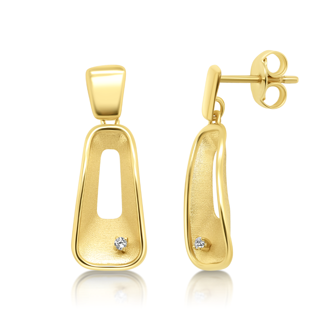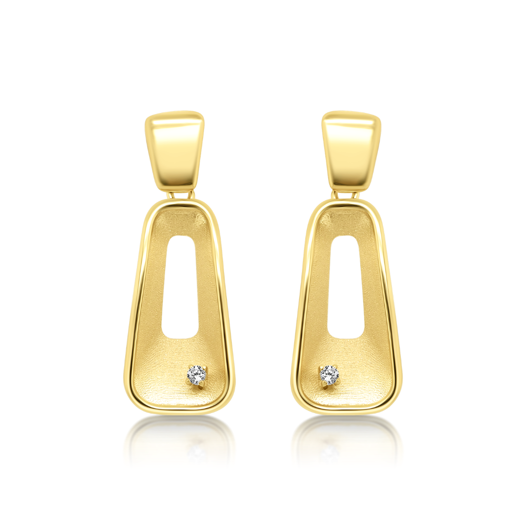 Cercei din aur galben de 14K, cu efect satinat și pietre cubic zirconia.