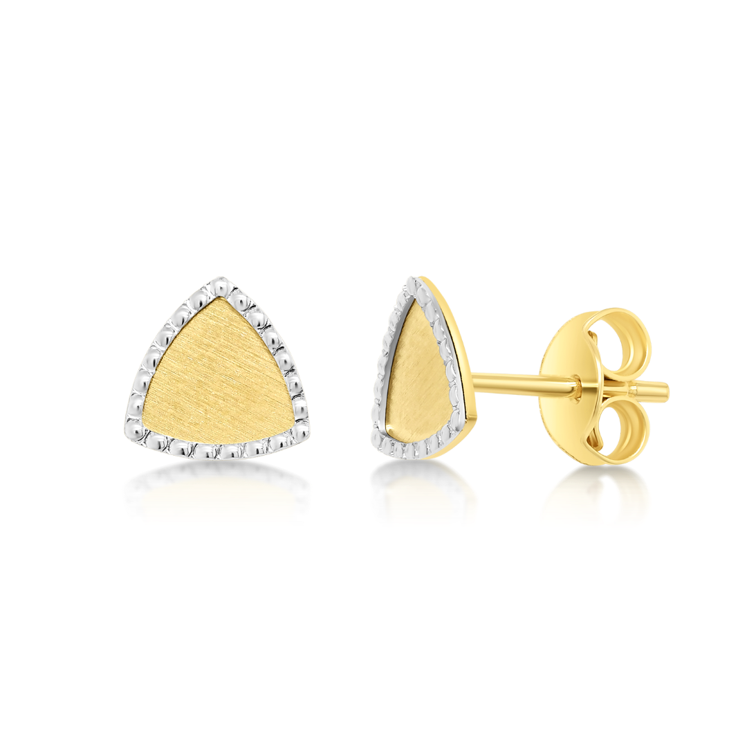 Cercei din aur galben de 14K cu element fațetat din aur alb.
