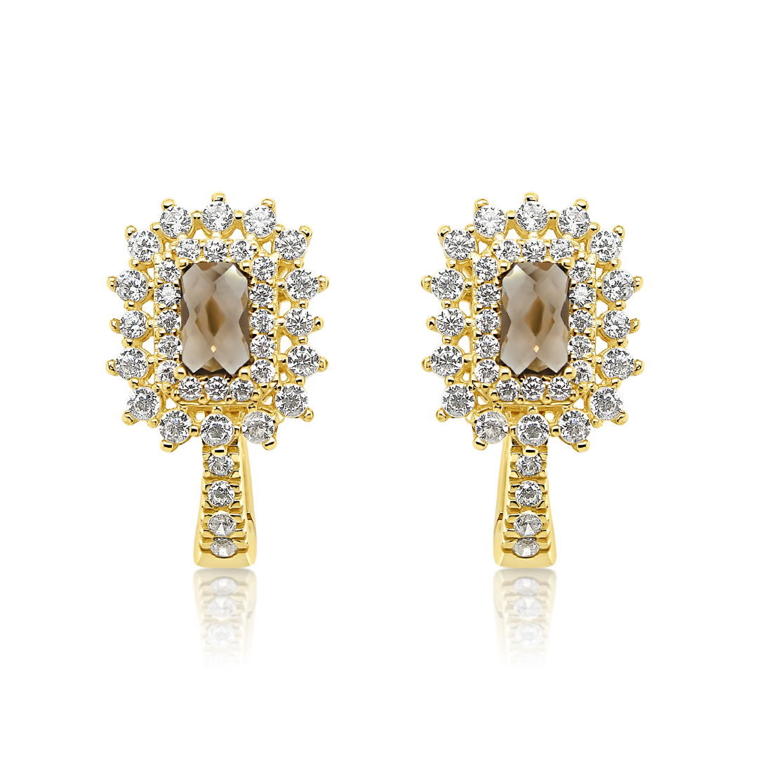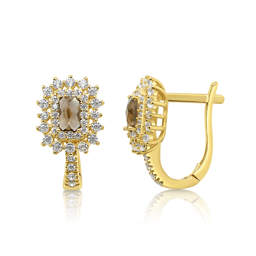 Cercei din aur galben de 14K cu pietre cubic zirconia.
