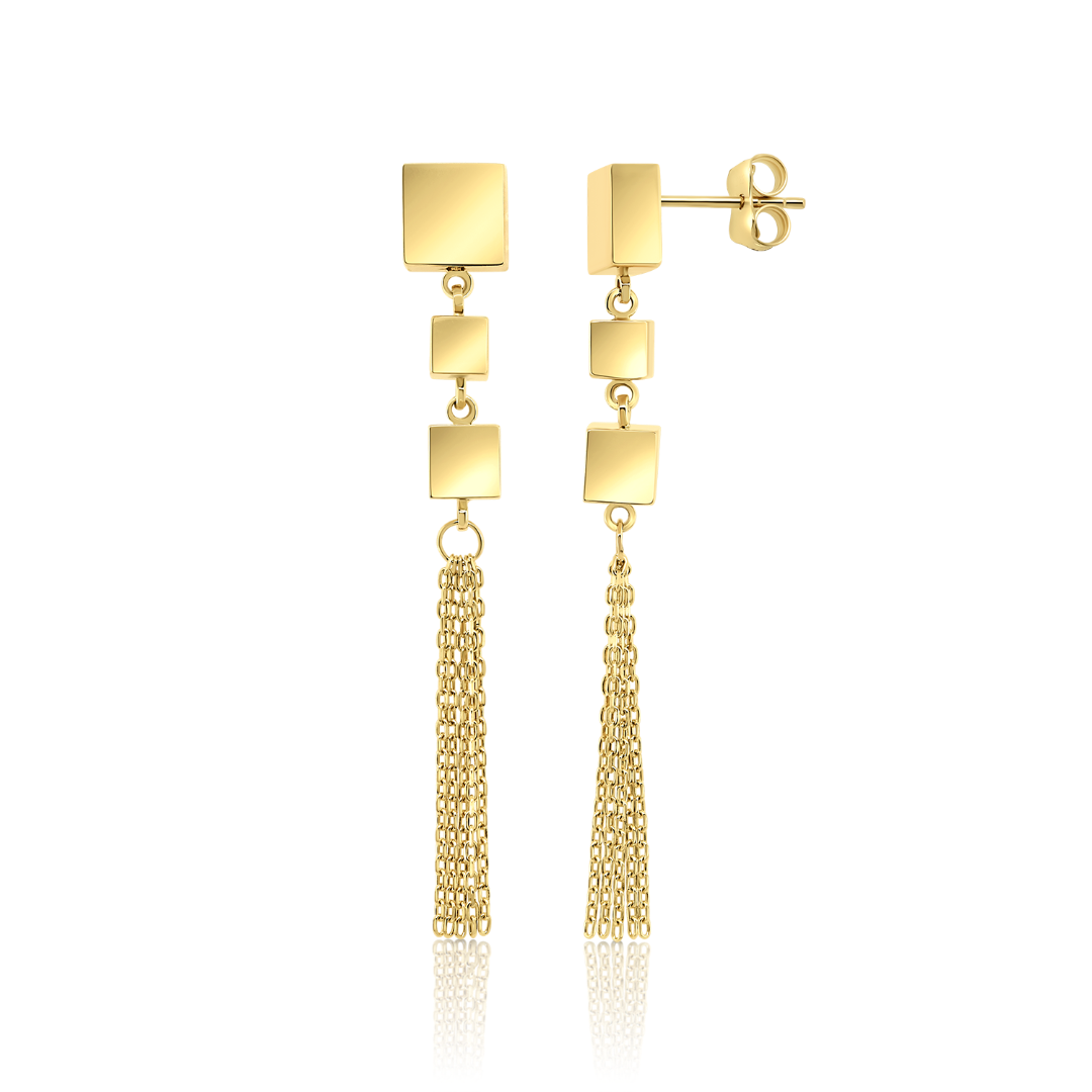 Cercei din aur galben de 14K cu elemente geometrice.