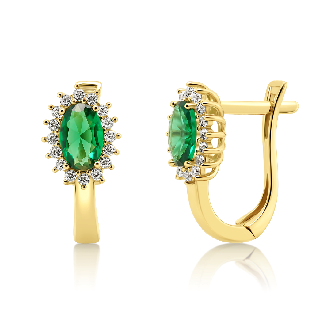 Cercei din aur galben de 14K cu pietre cubic zirconia.