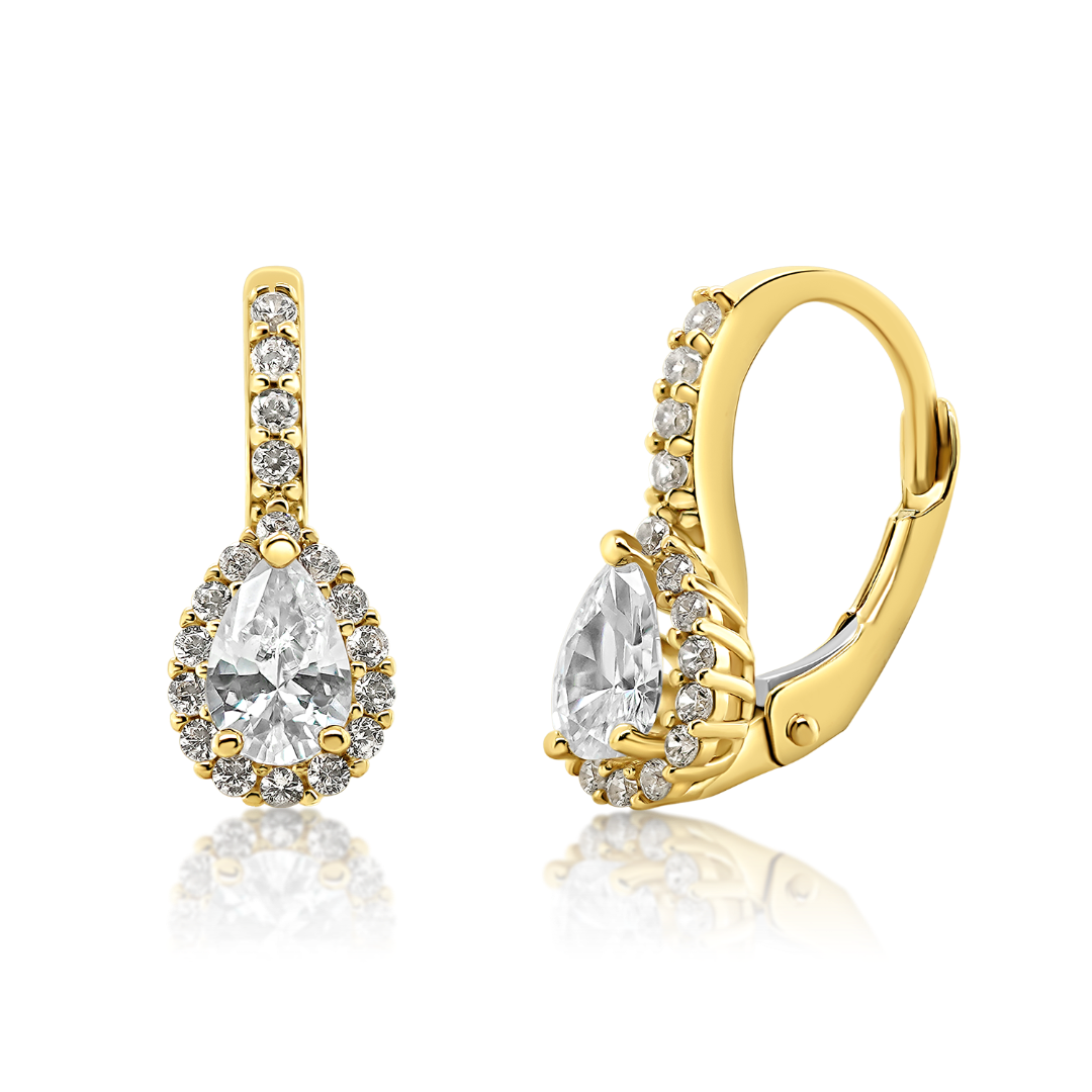 Cercei din aur galben de 14K cu pietre cubic zirconia.