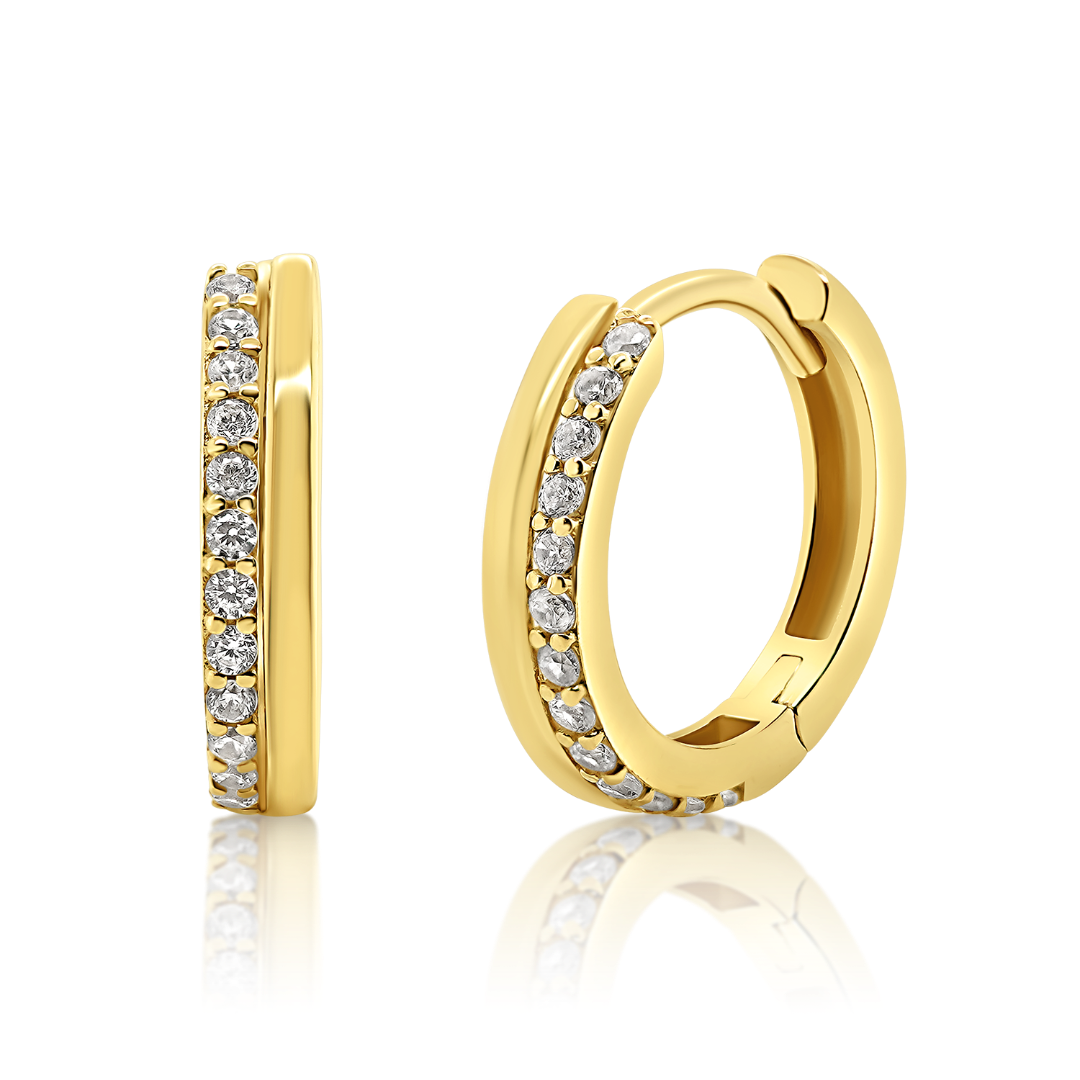 Cercei din aur galben de 14K cu pietre cubic zirconia.