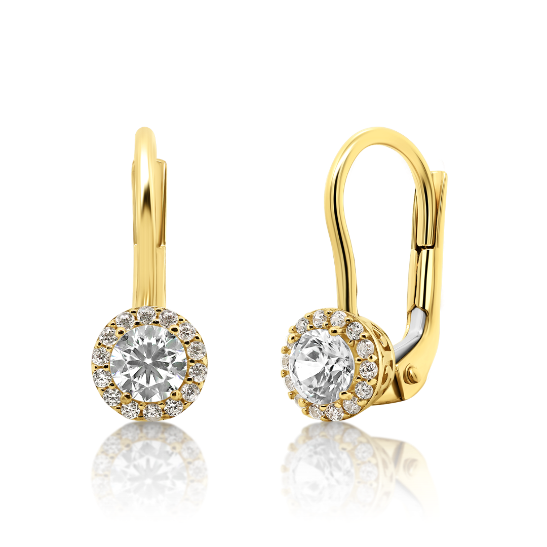 Cercei din aur galben de 14K cu pietre zirconia incolore.