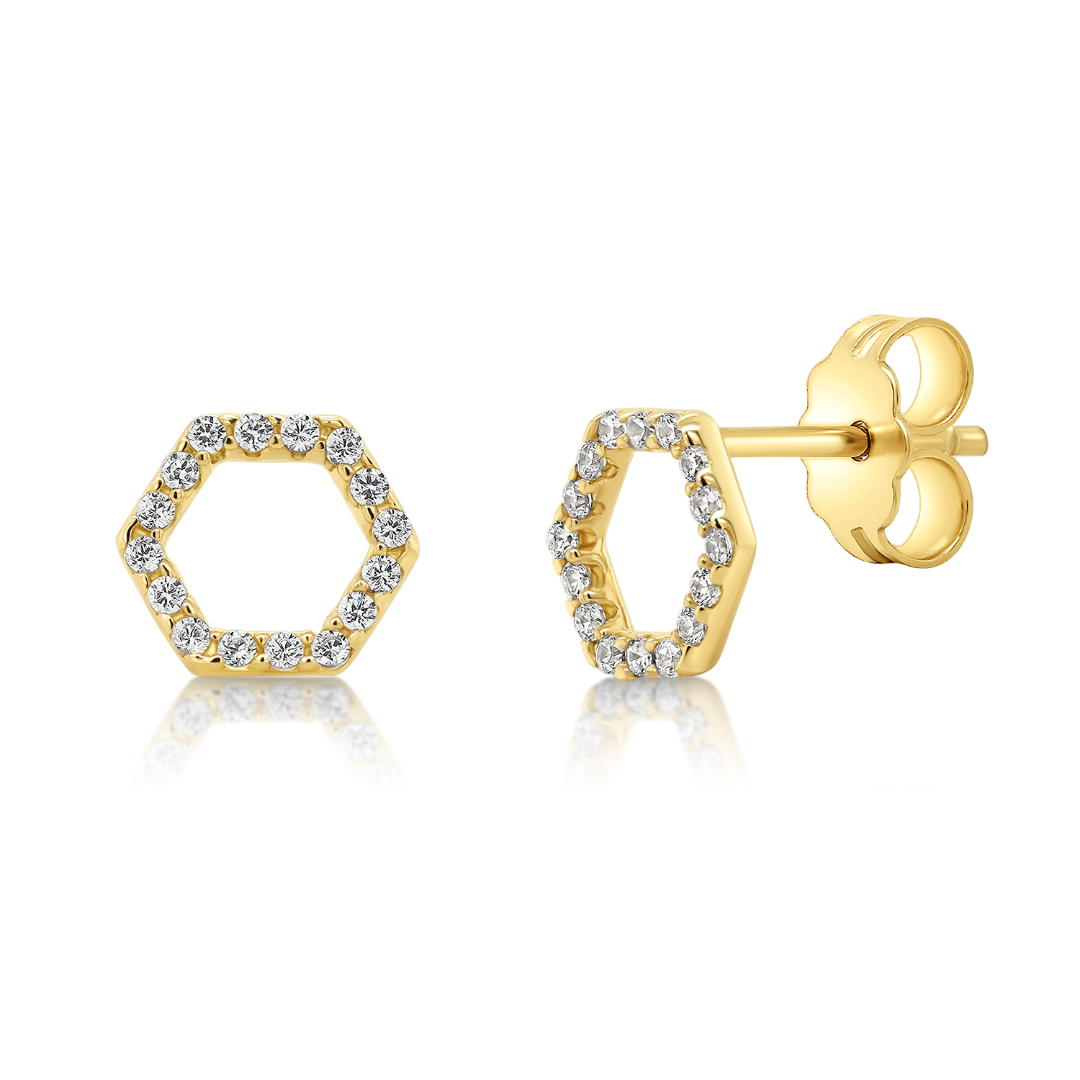 Cercei din aur galben de 14K cu zirconii incolore.