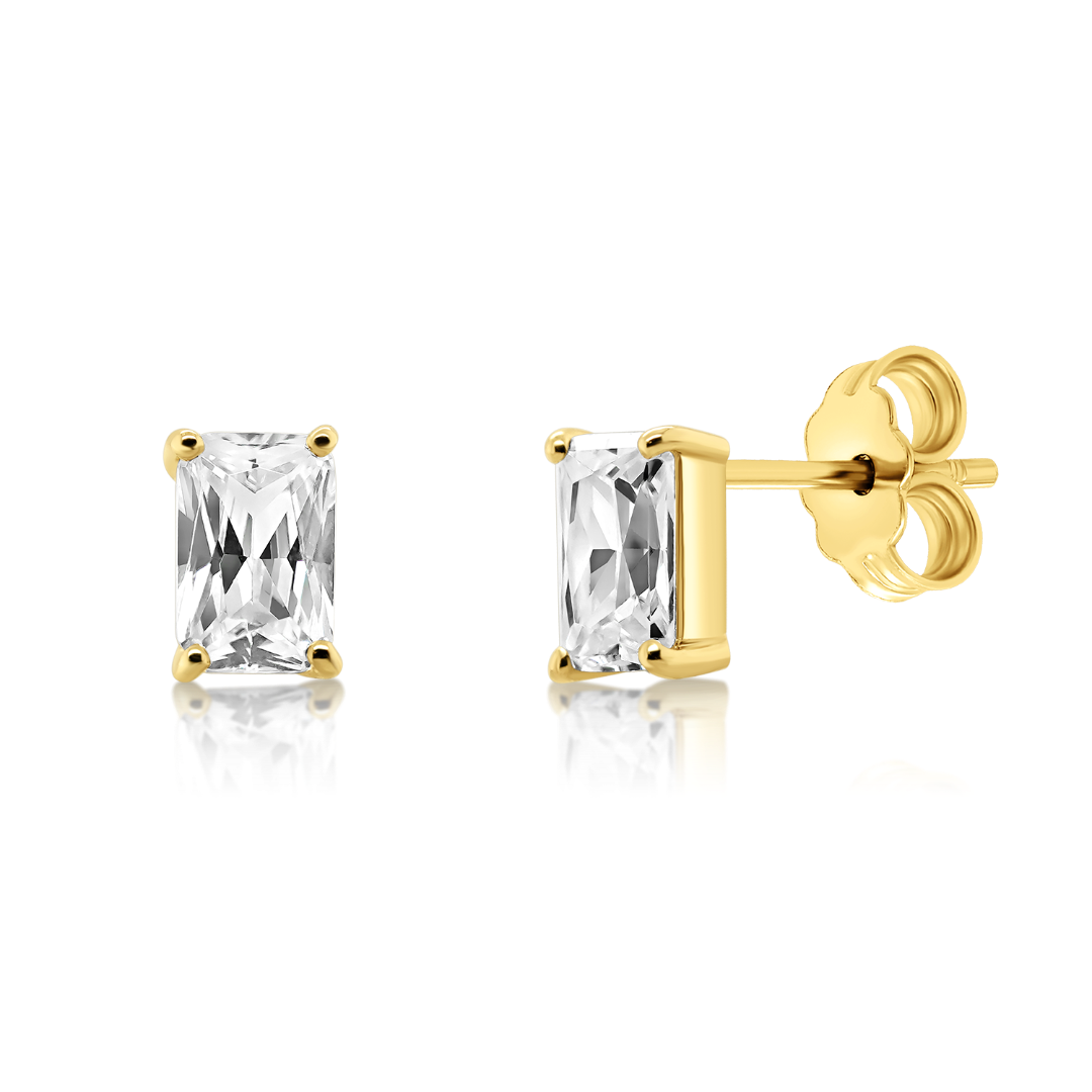 Cercei din aur galben de 14K cu zirconii incolore emerald cut.