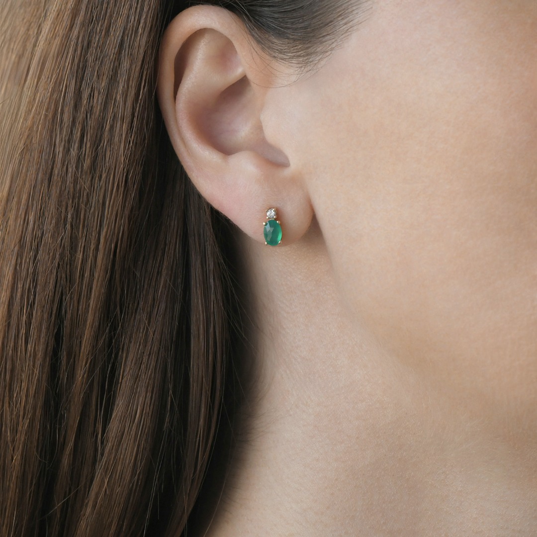 Cercei din aur galben de 14K cu Agate verzi și pietre cubic zirconia.