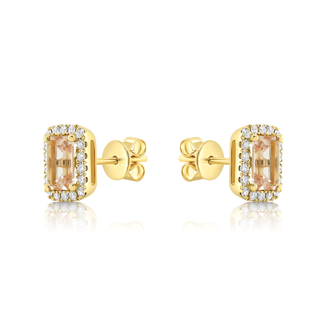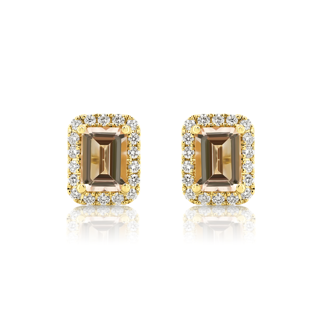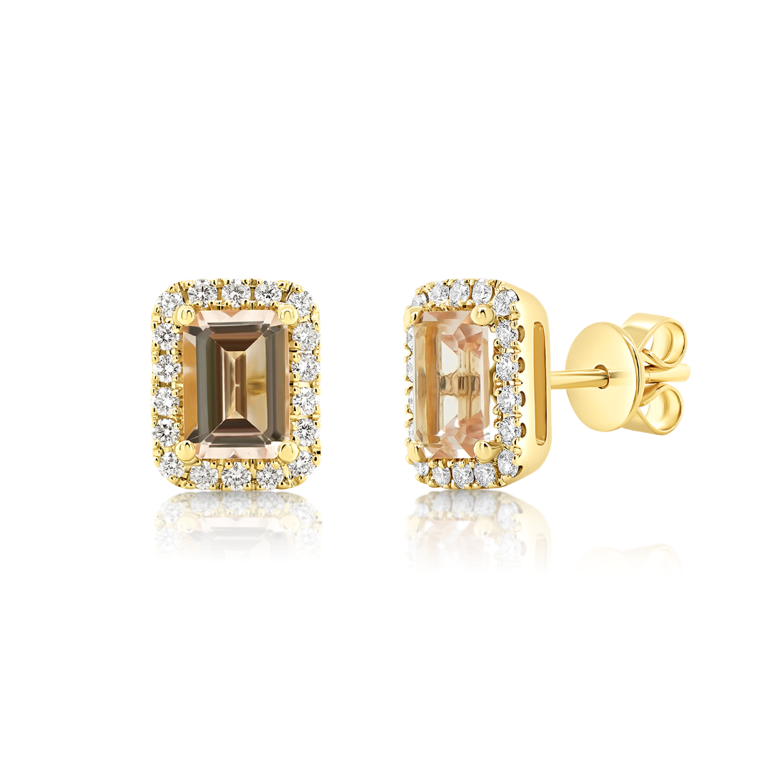 Cercei din aur galben de 14K, cu două Morganite de 2ct și 36 de Diamante brilliant cut de 0.34ct.