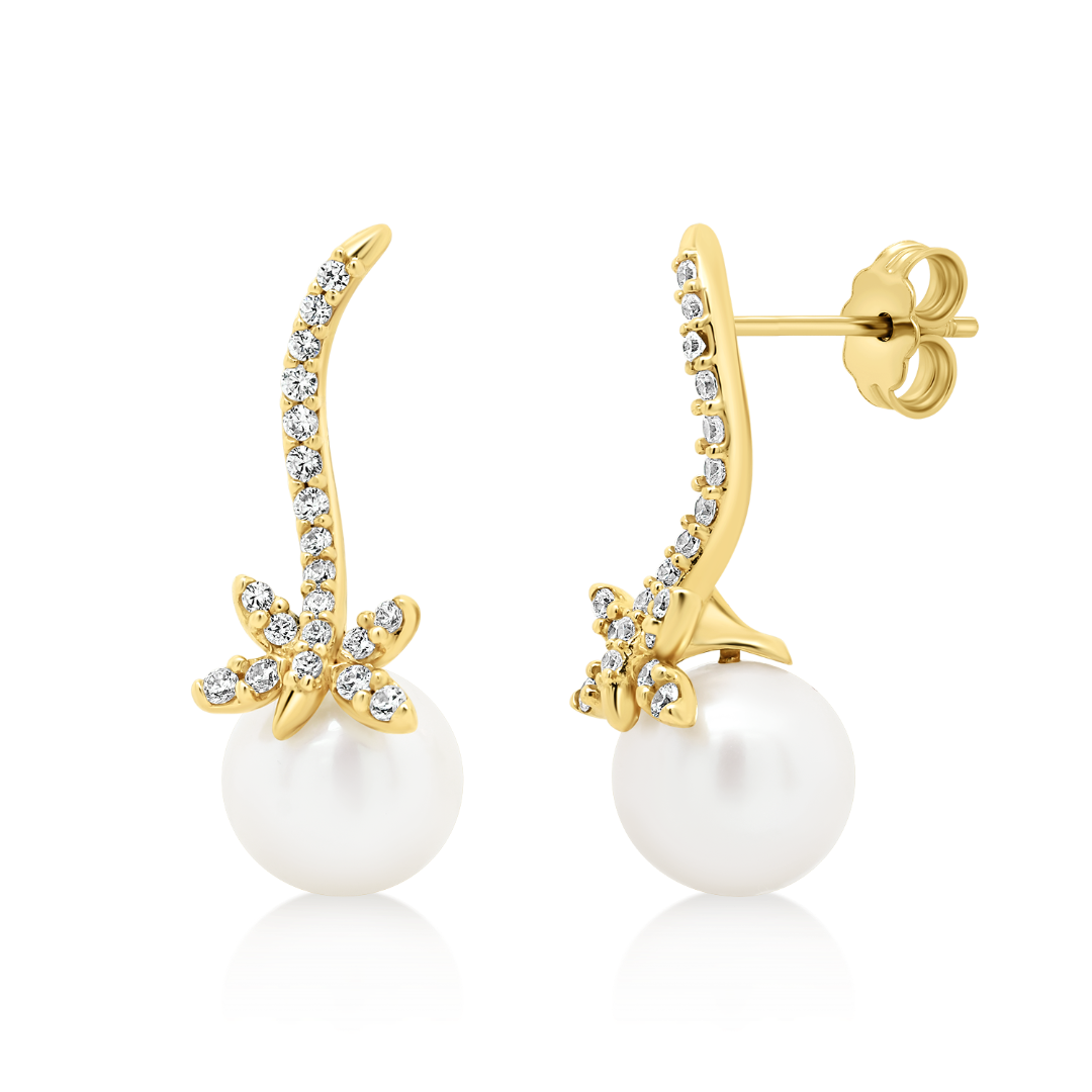 Cercei din aur galben de 14K cu Perle de cultură și pietre cubic zirconia.