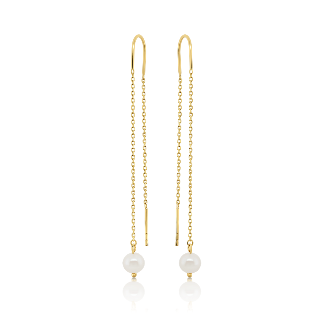 Cercei cu lanț din aur galben de 14K și Perle de cultură.