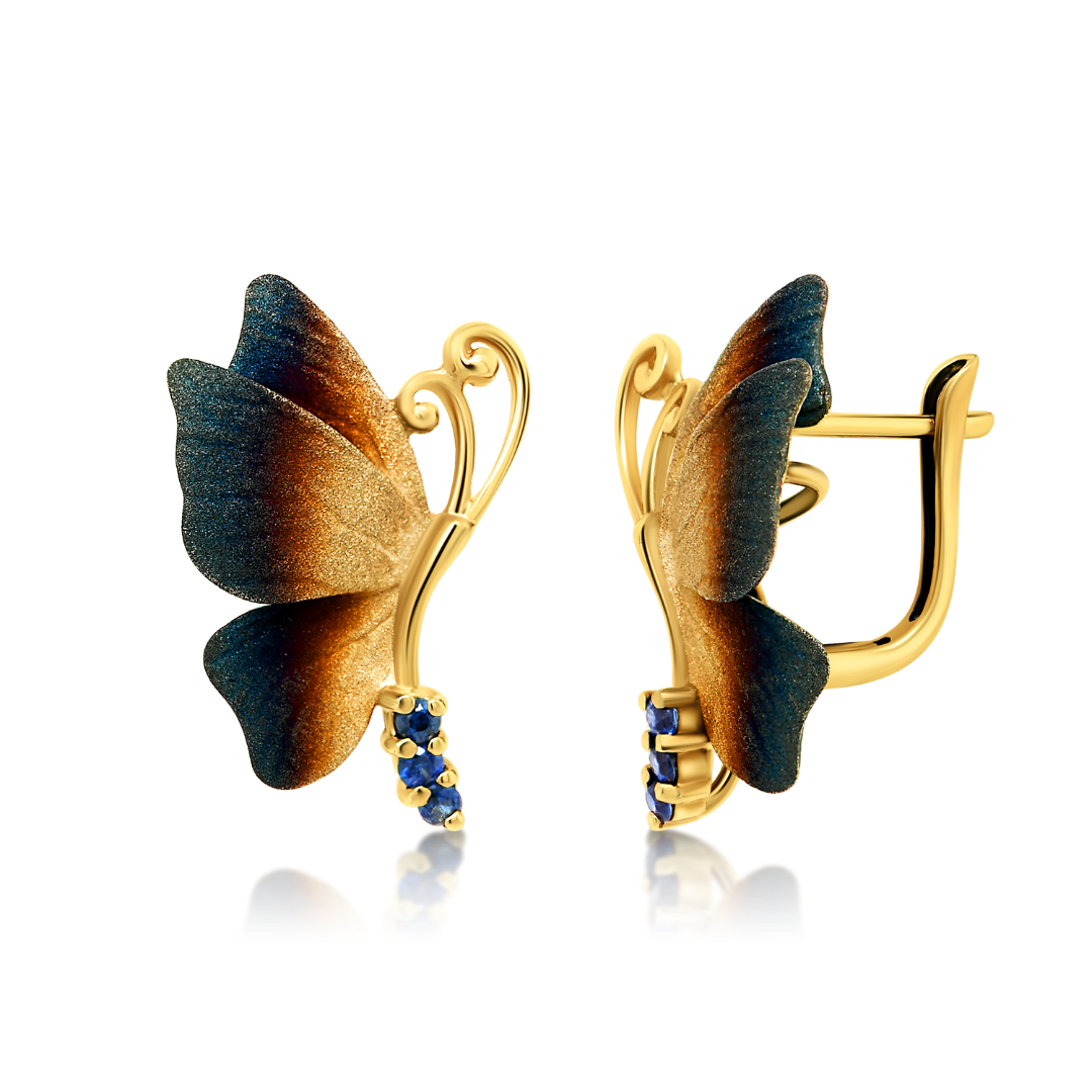 Cercei din aur galben de 14K încrustați cu 6 Safire albastre de 0.16ct.