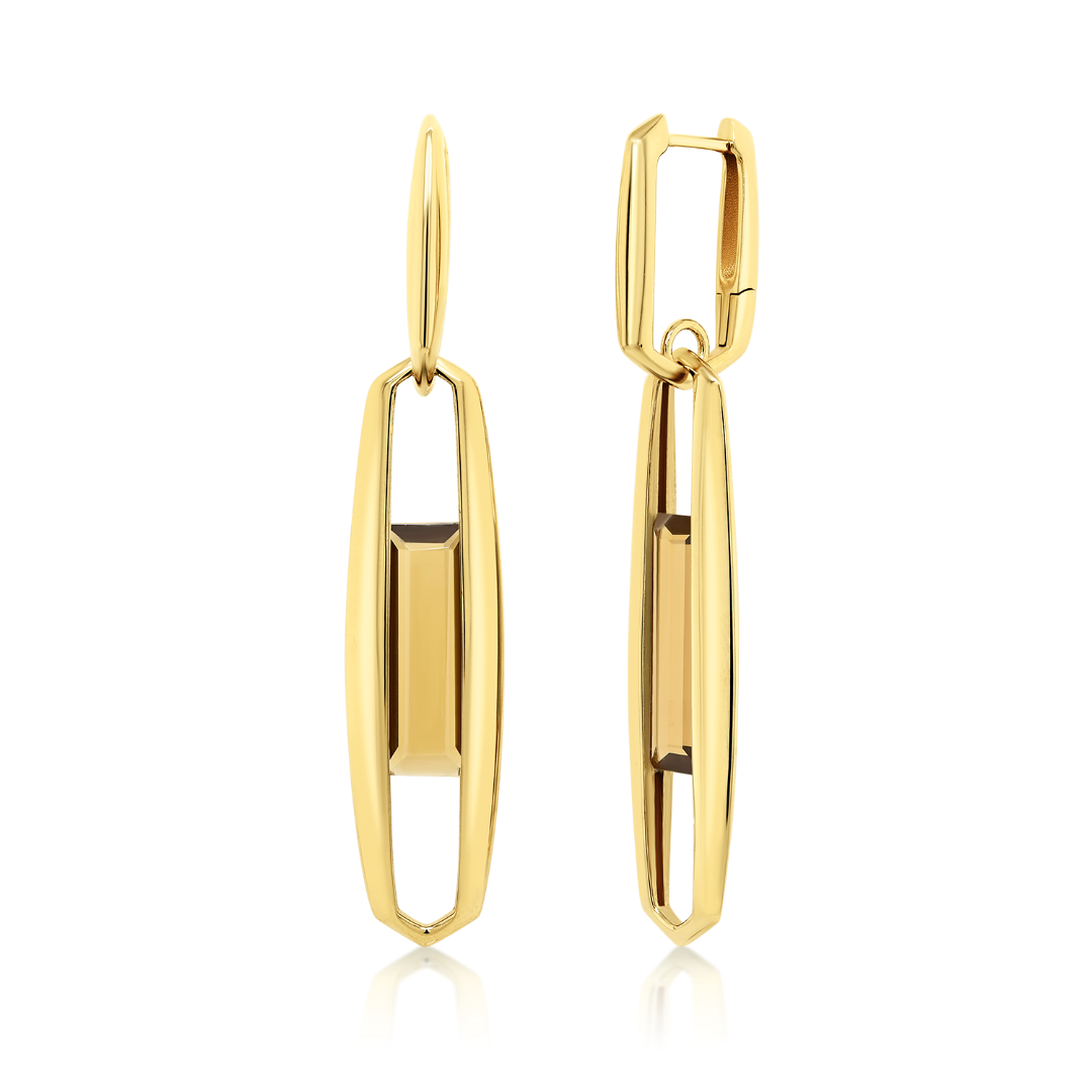 Cercei din aur galben de 14K cu Smoky Quartz.