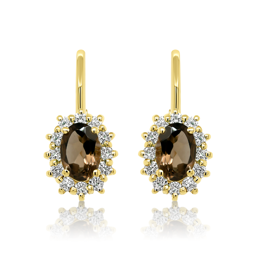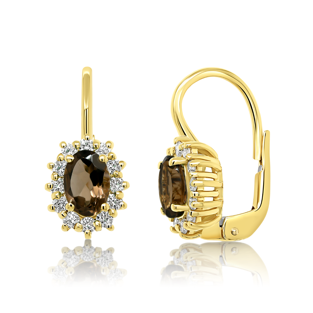 Cercei din aur galben de 14K cu Smoky Quartz și pietre cubic zirconia.