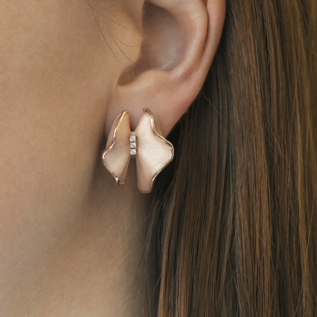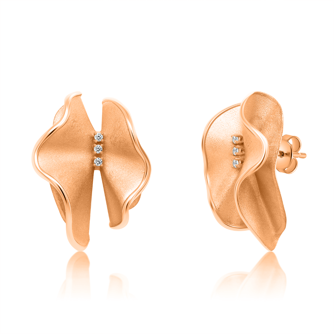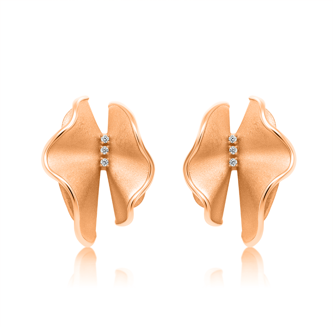 Cercei cu efect satinat din aur roz de 14K și pietre cubic zirconia.