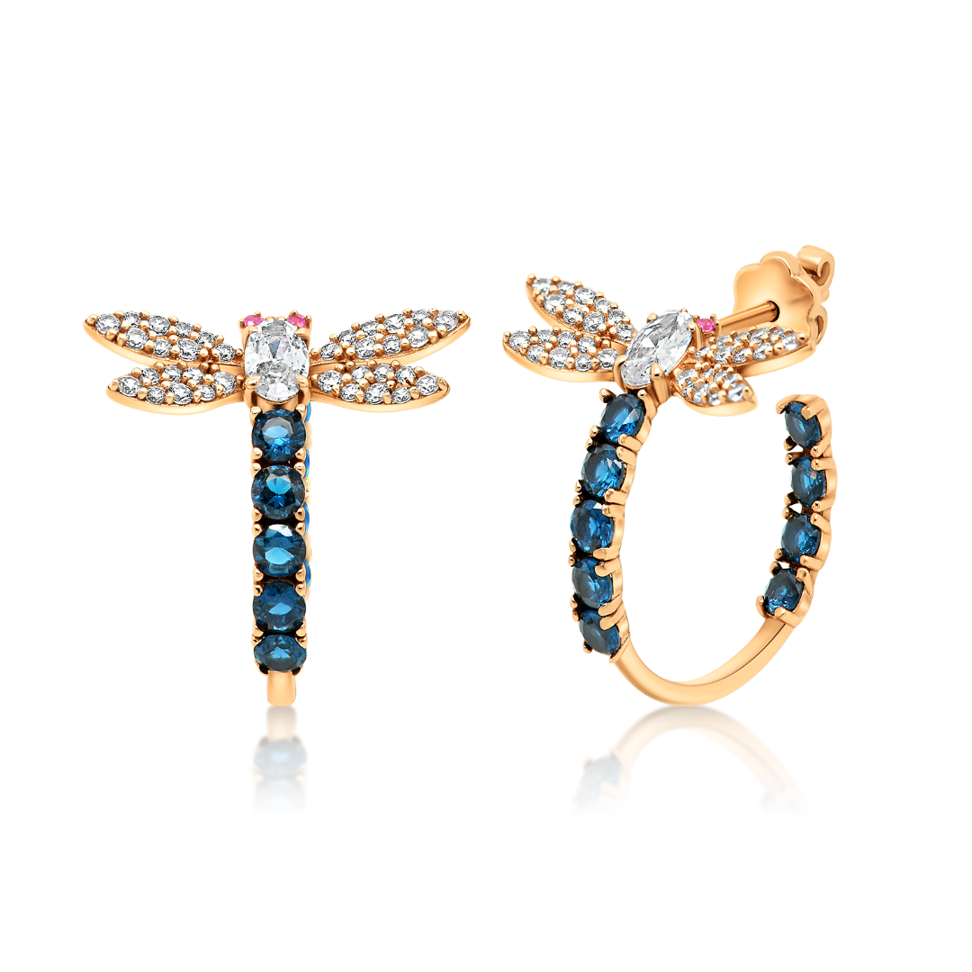 Cercei din aur roz de 14K cu pietre cubic zirconia.