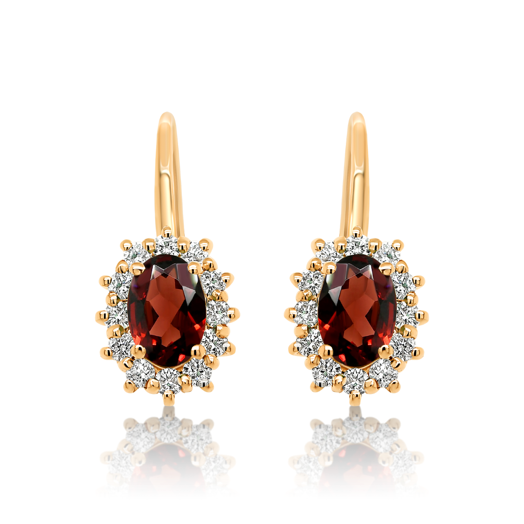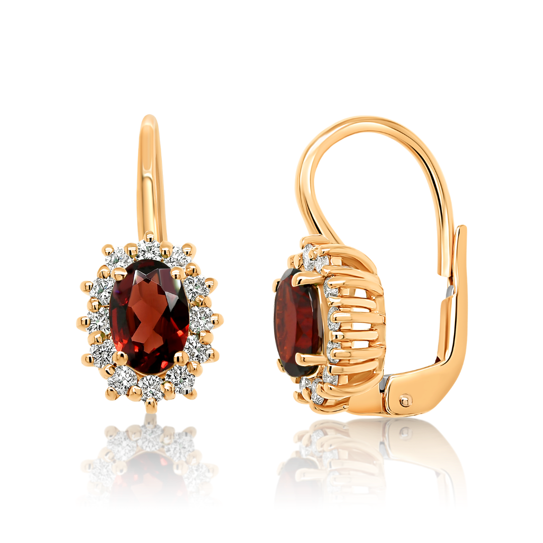 Cercei din aur roz de 14K cu pietre cubic zirconia și două Granate roșii.