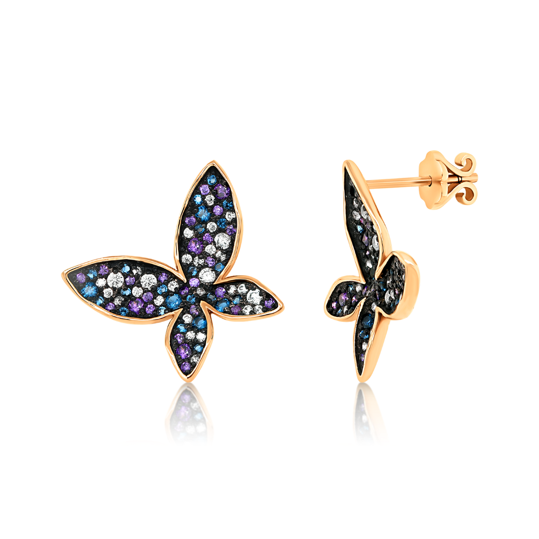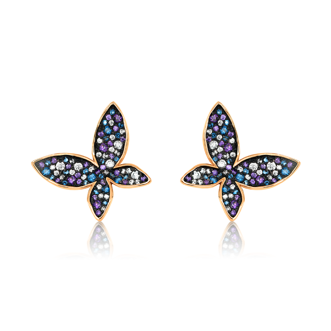 Cercei din aur roz de 14K cu pietre cubic zirconia colorate.