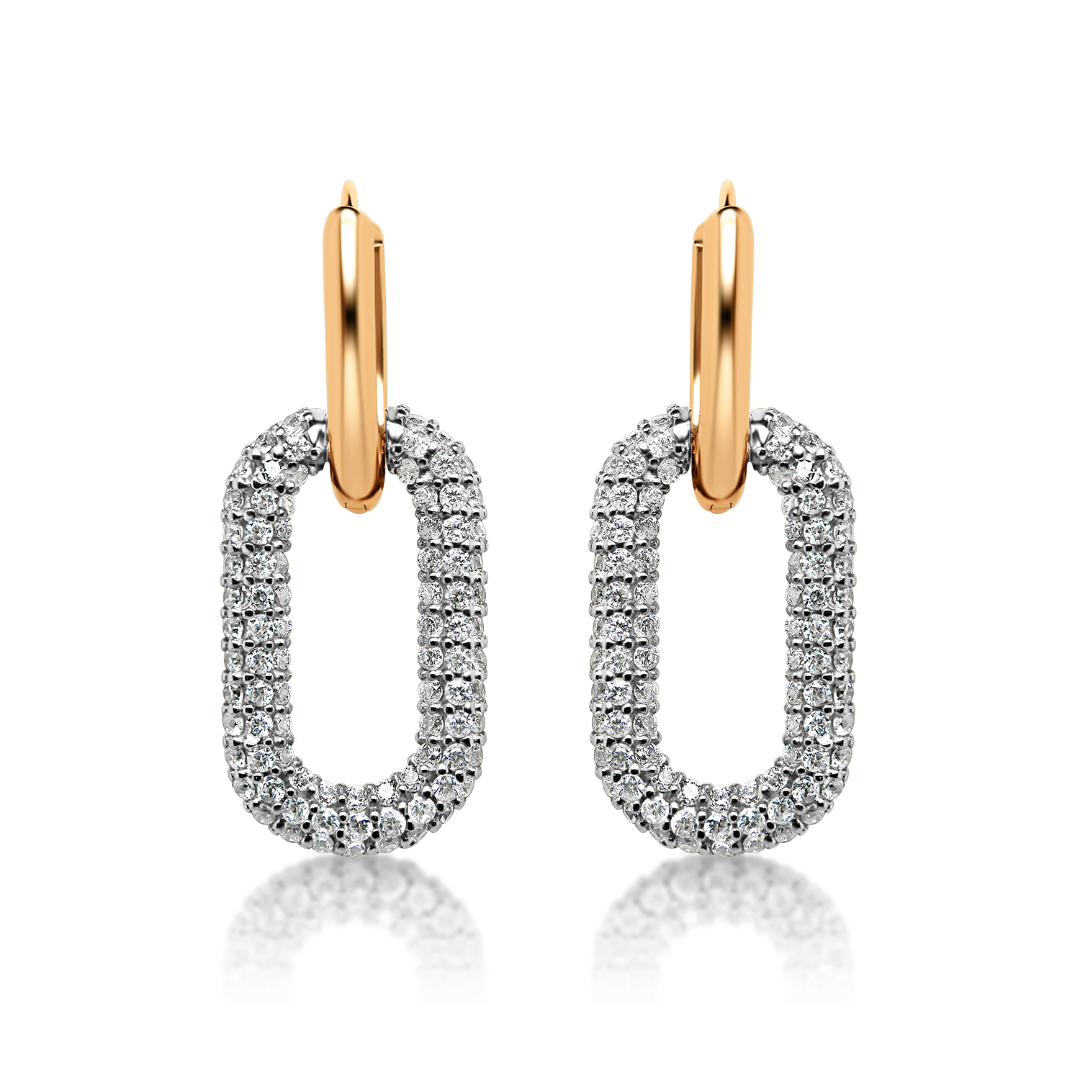 Cercei din aur roz de 14K cu pietre cubic zirconia.