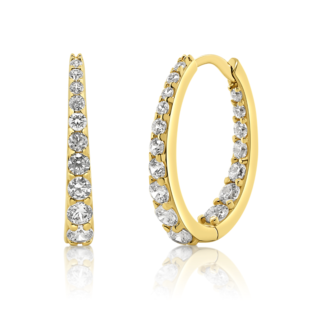 Cercei ovali din aur galben de 14K cu zirconii incolore.
