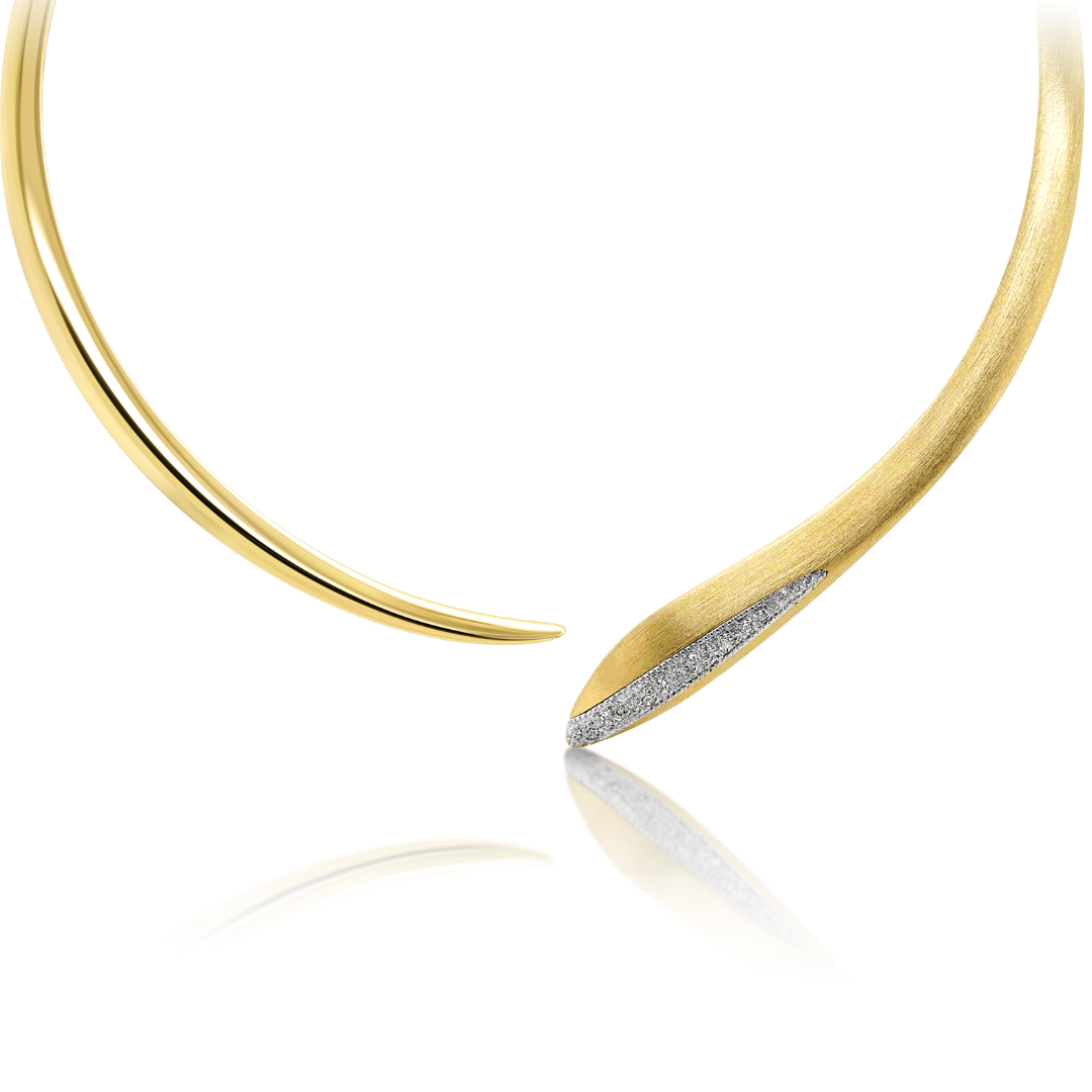 Colier fix cu efect satinat din aur galben de 14K și zirconii incolore.