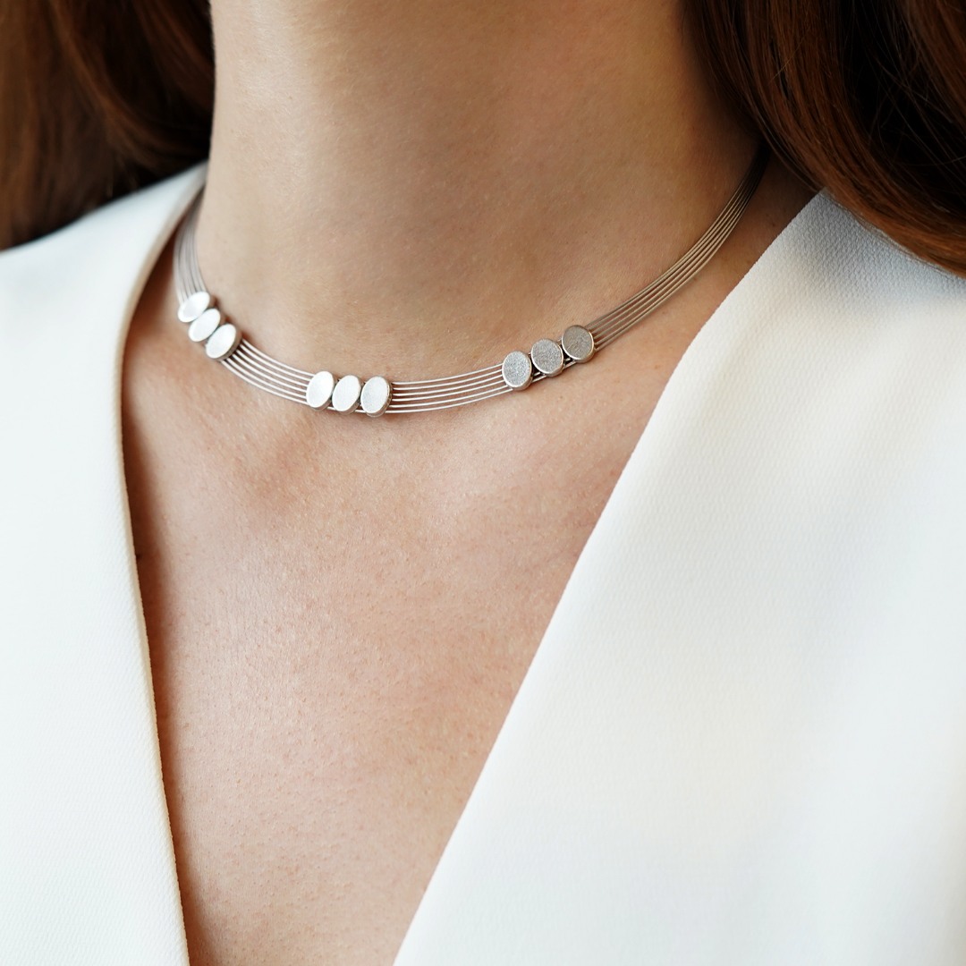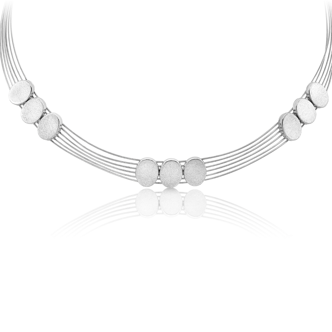 Colier fix din aur alb de 14K cu element ovale satinate.