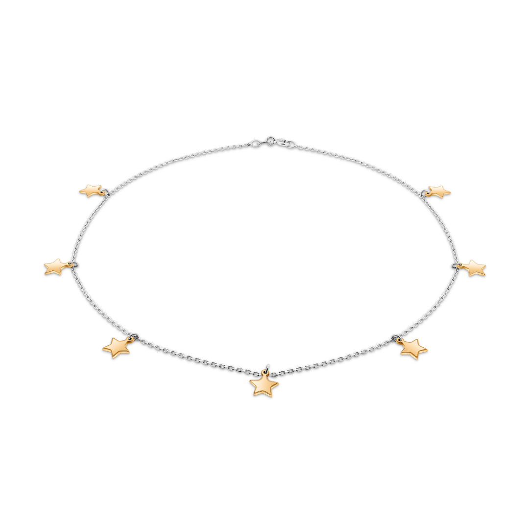 Colier din aur alb de 14K cu pandantive stea din aur roz.