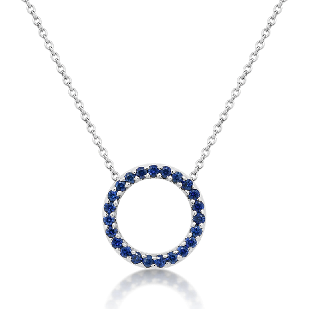 Lanț din aur alb de 18K și pandantiv cu Safire albastre naturale.