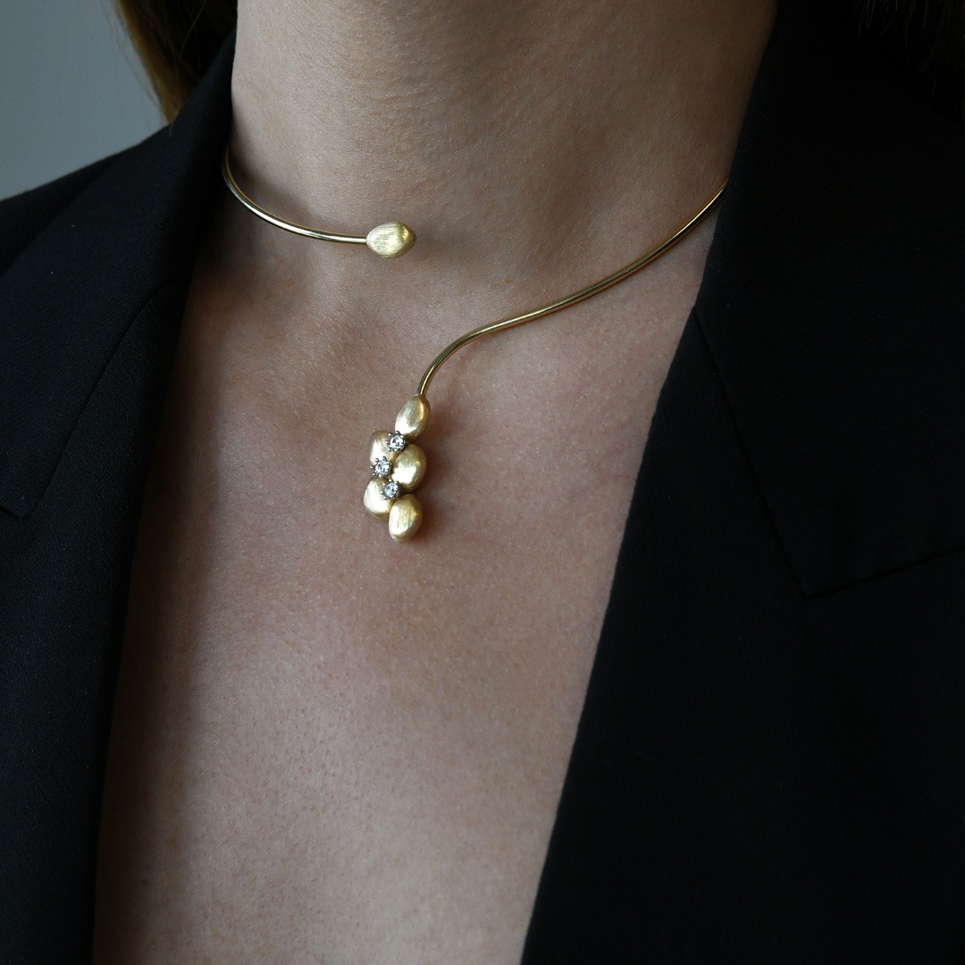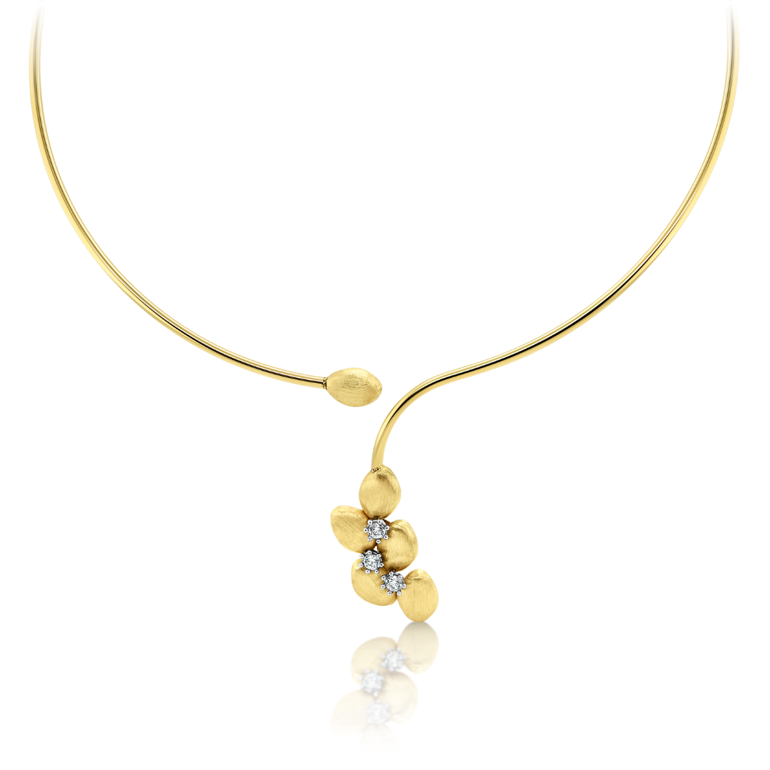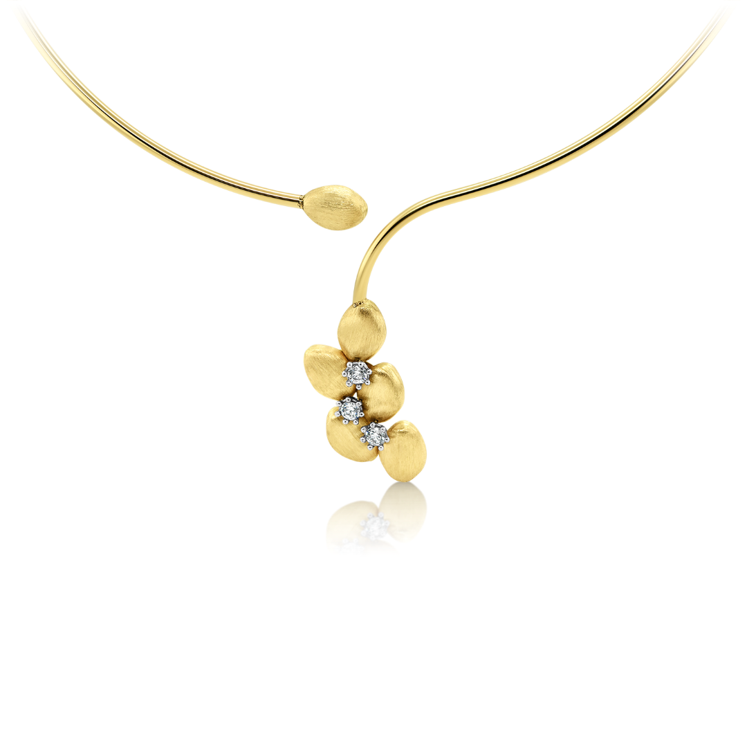 Colier fix din aur galben de 14K cu elemente satinate și pietre cubic zirconia.