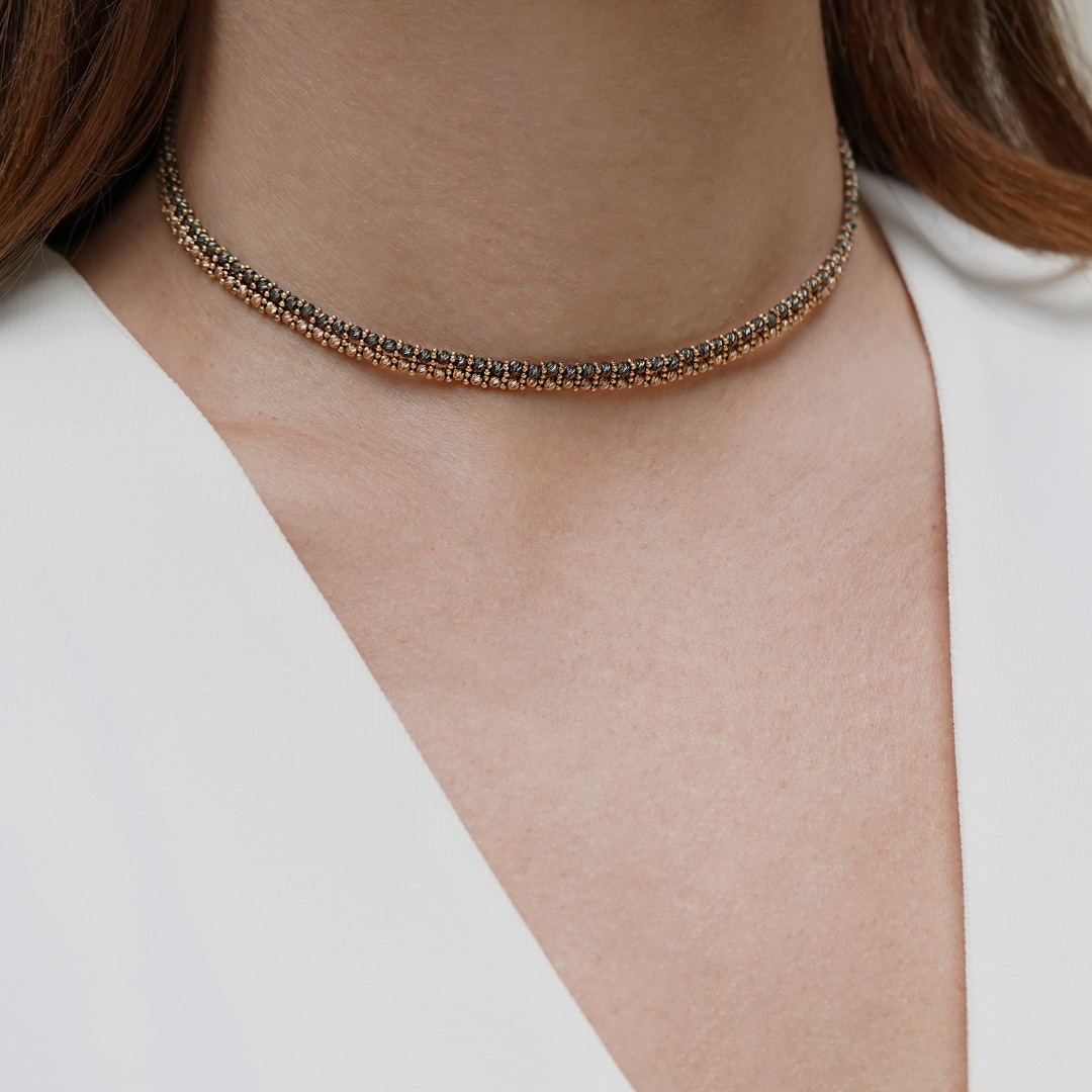 Colier fix din aur roz de 14K cu rodiu negru.