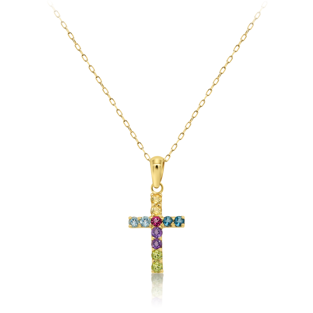 Lanț cu pandantiv cruce din aur galben de 14K cu Topaze colorate.
