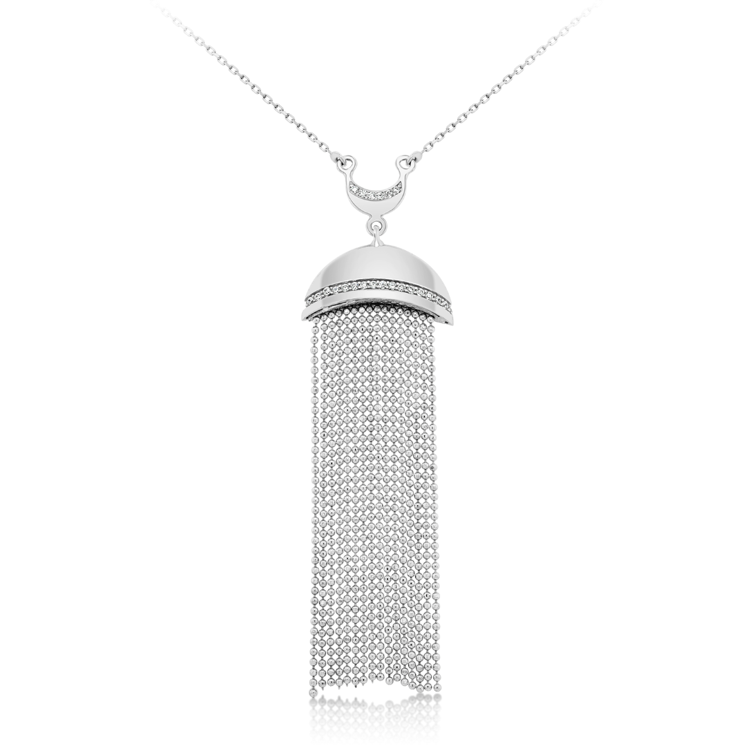 Lanț din aur alb de 14K și pandantiv cu pietre cubic zirconia.