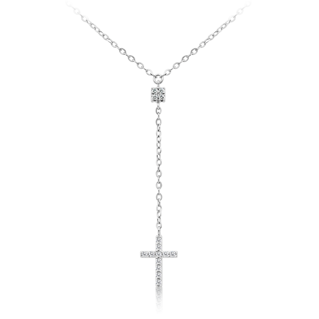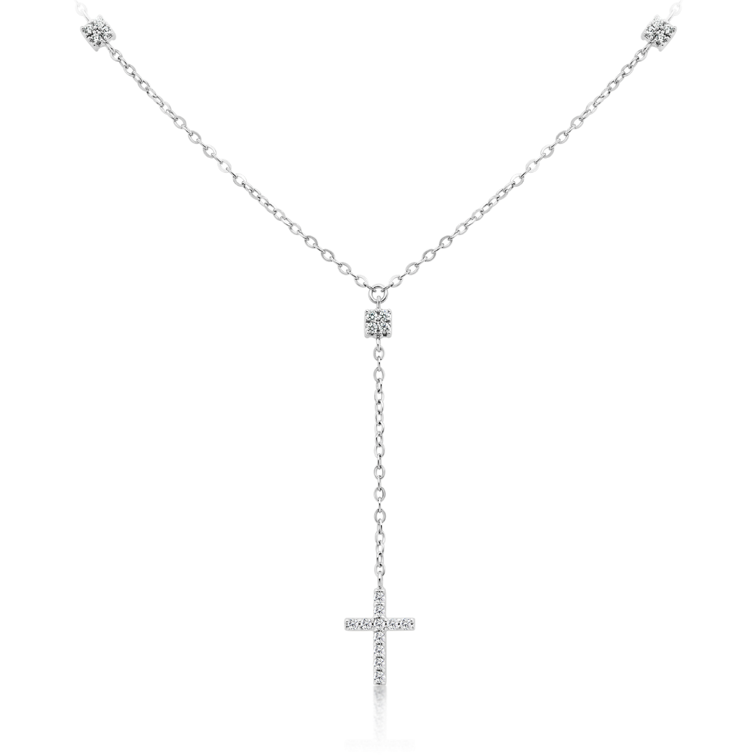 Lanț cu pandantiv din aur alb de 14K cu pietre cubic zirconia.