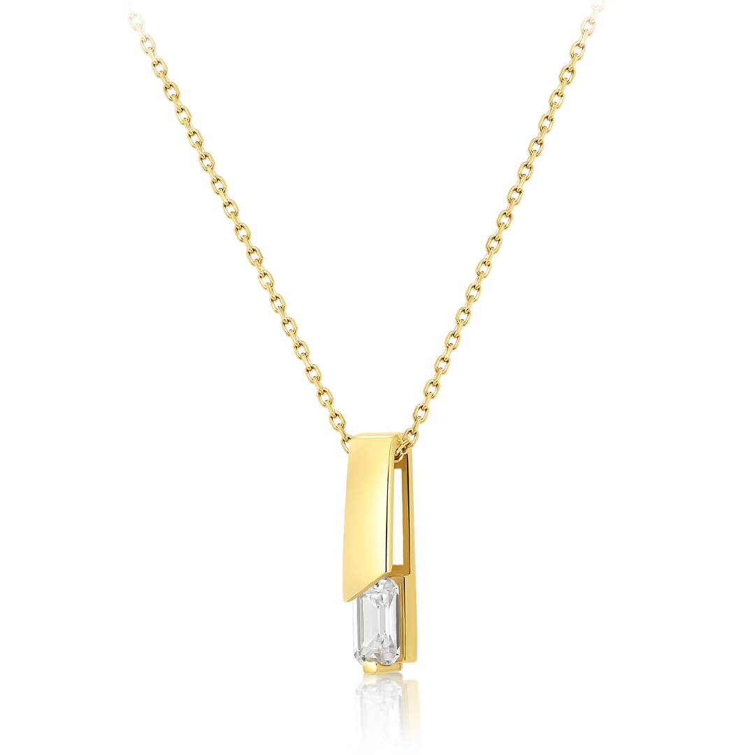 Lanț din aur galben de 14K și pandantiv cu piatră zirconia.