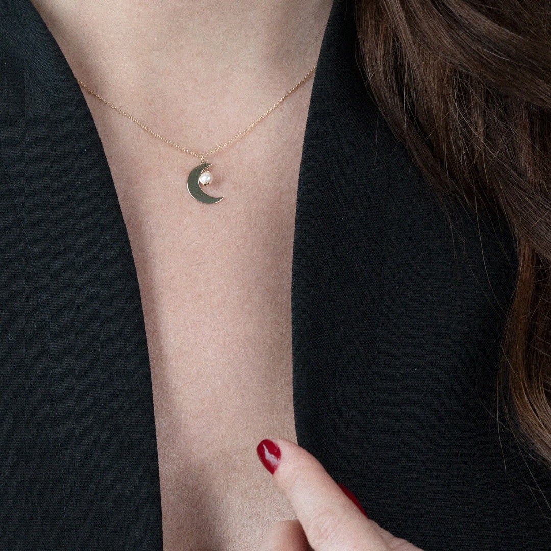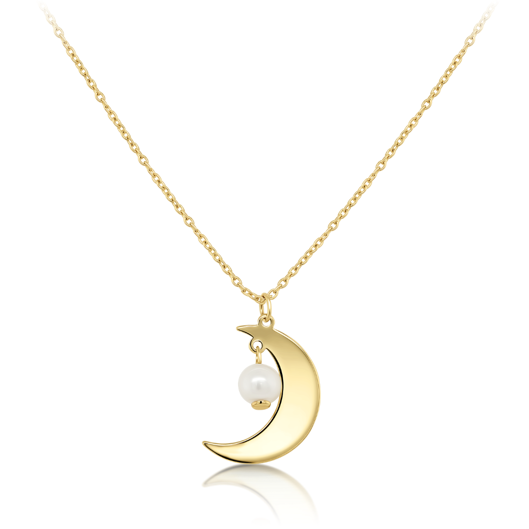 Lanț cu pandantiv semiluna cu Perlă de cultură, din aur galben de 14K.
