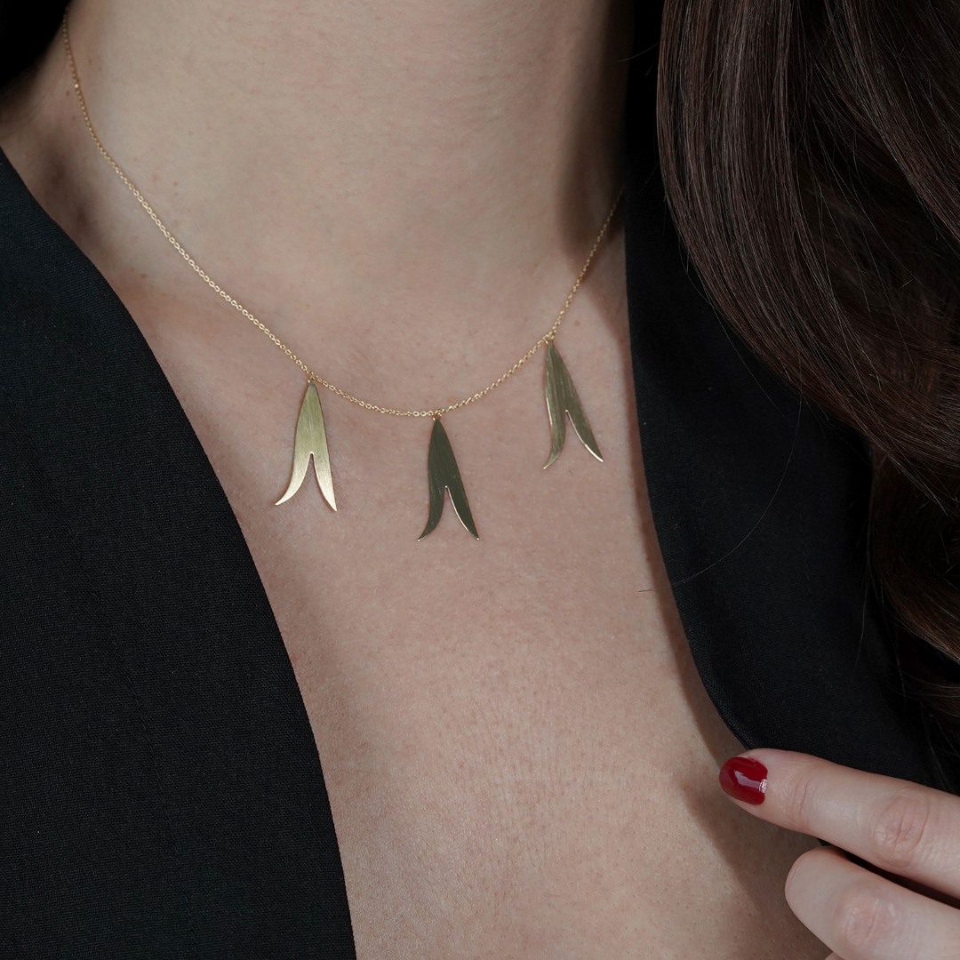 Lanț cu pandantiv satinat din aur galben de 14K.