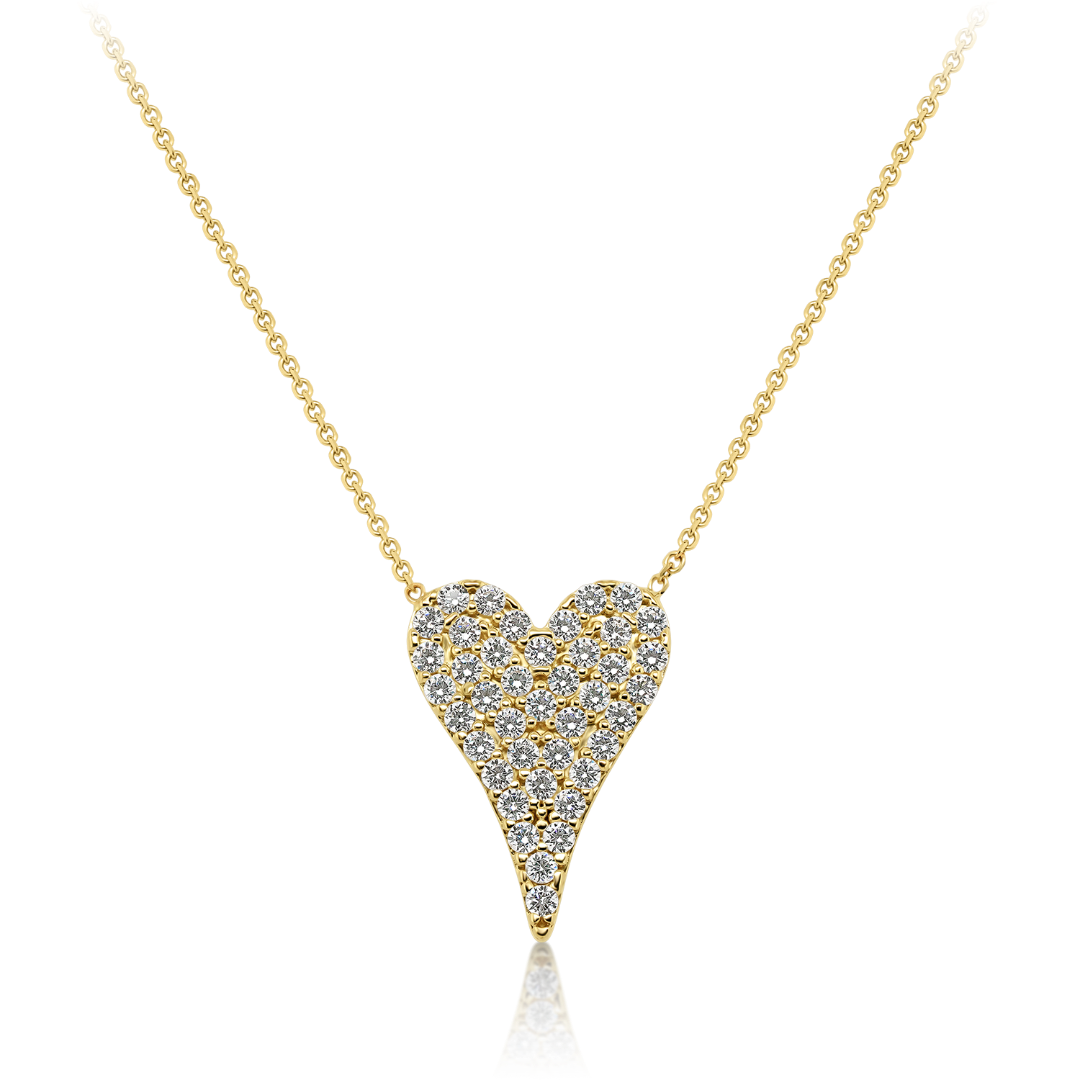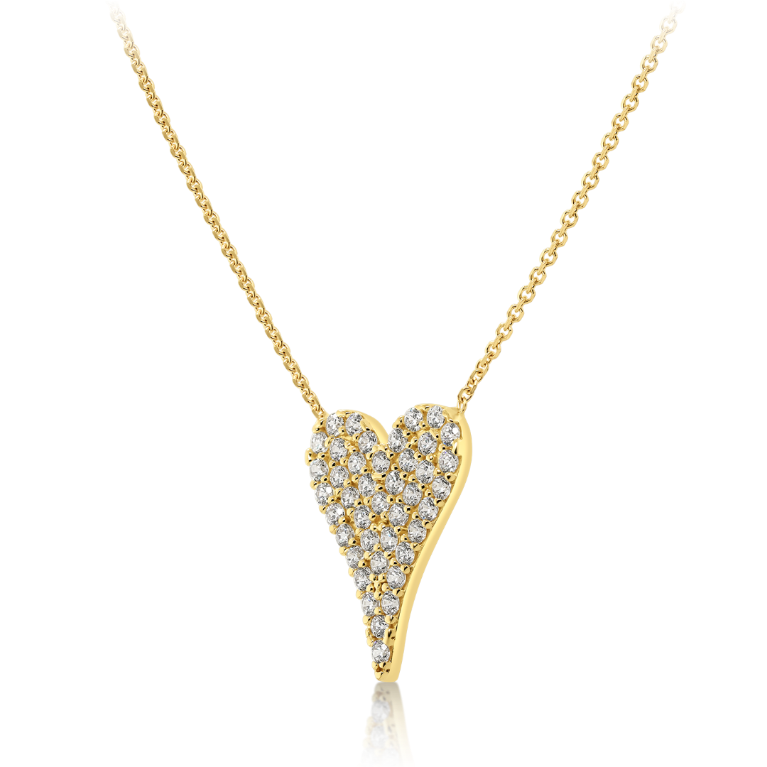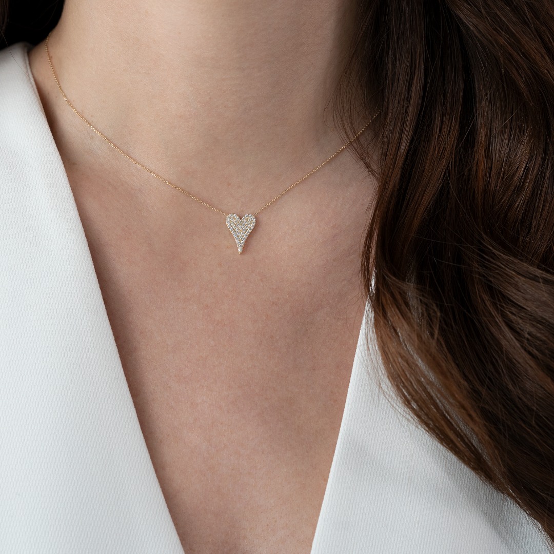 Lanț din aur galben de 14K și pandantiv inimă cu zirconii incolore.