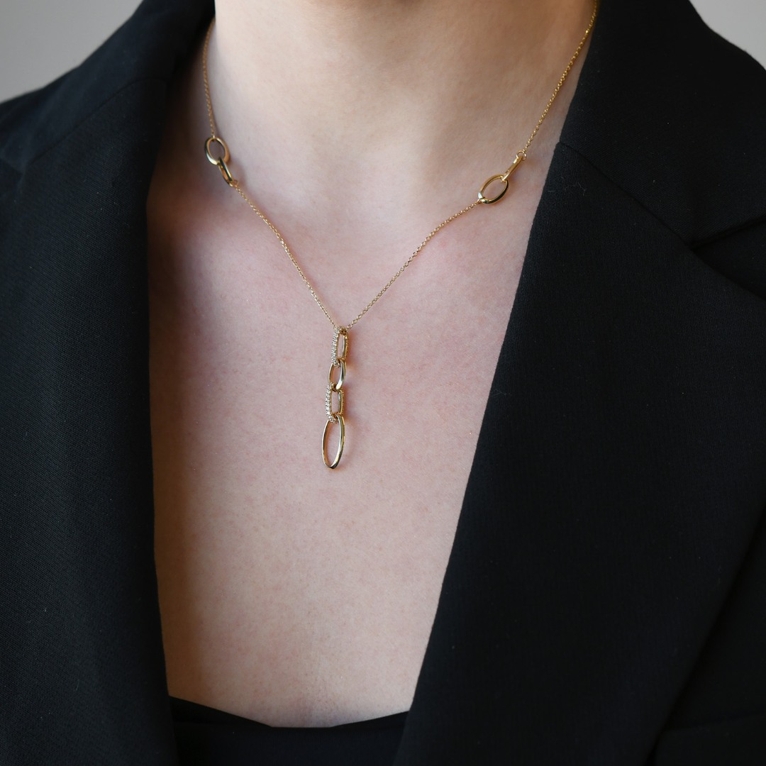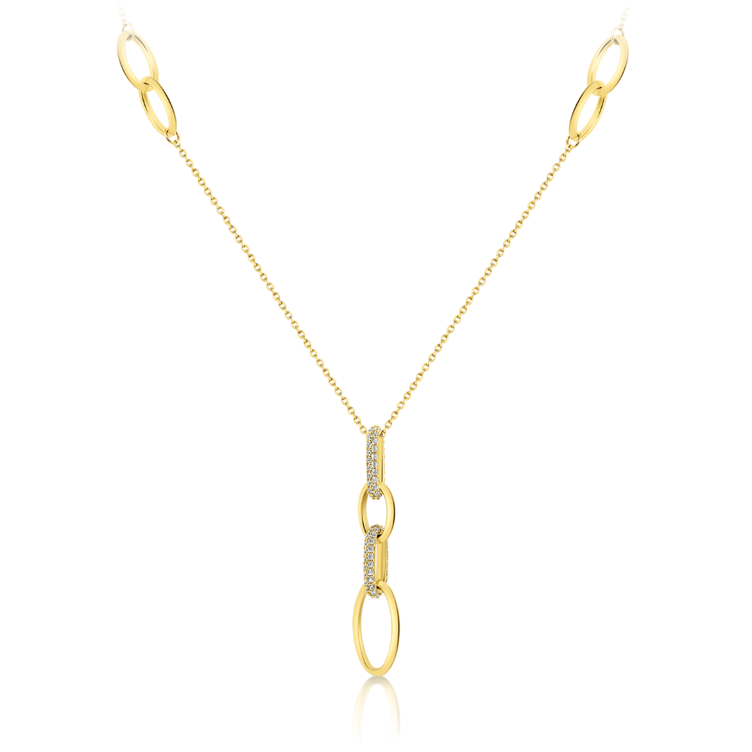 Lanț din aur galben de 14K și pandantiv cu pietre cubic zirconia.