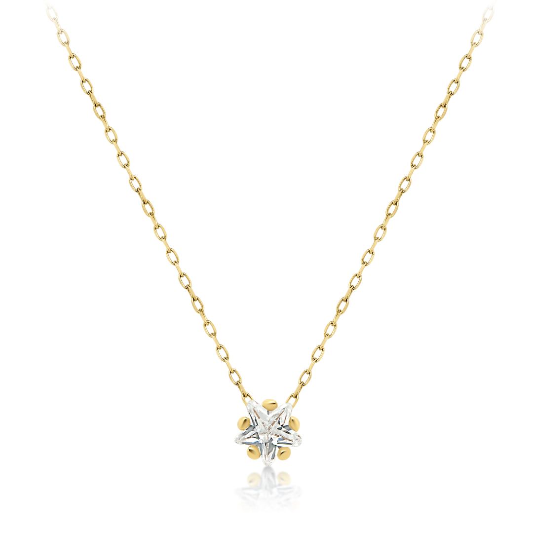 Lanț și pandantiv din aur galben de 14K cu piatră cubic zirconia.